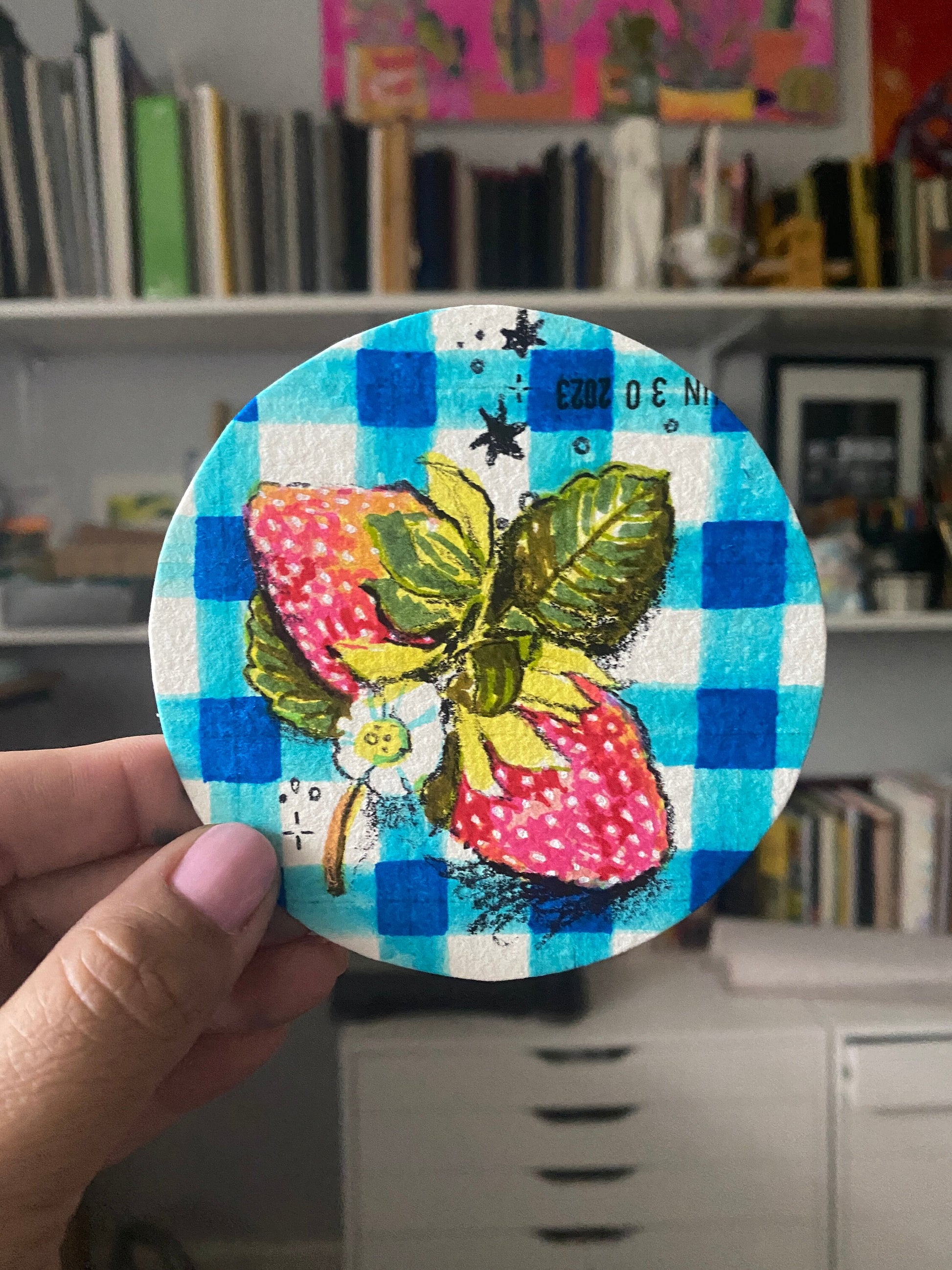 Summer Strawberries Original Mixed Media Drawing | Round Marker Drawing on Paper