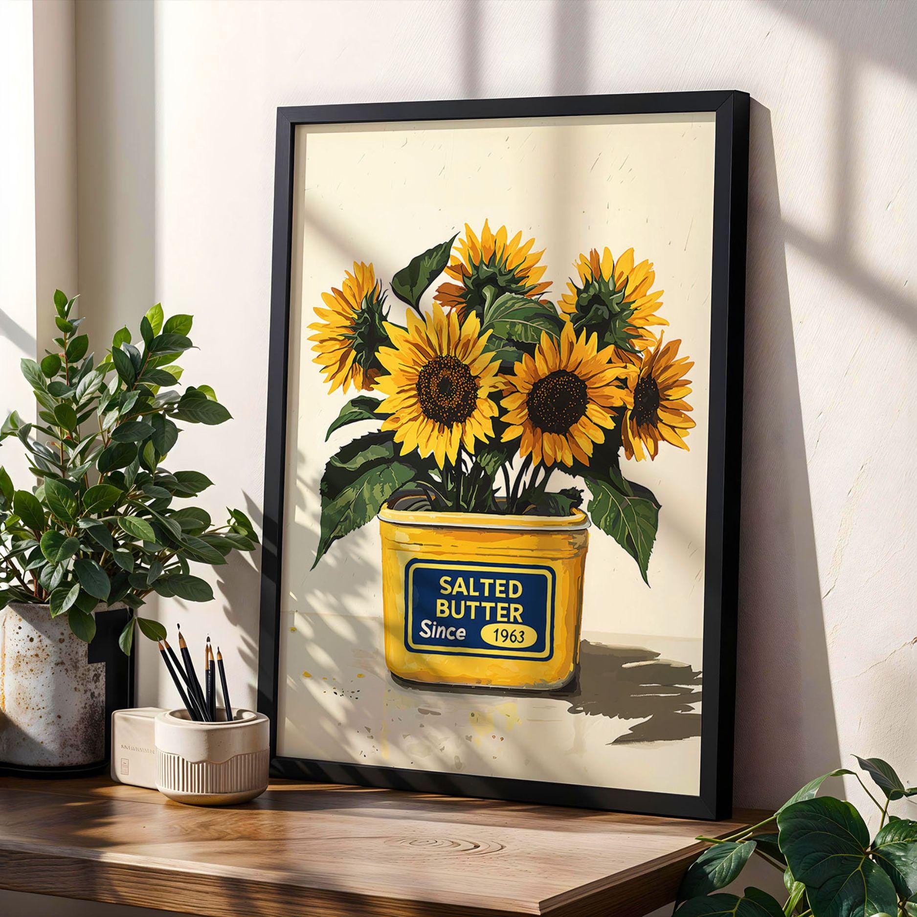 Sunflower Kitchen Wall Art Salted Butter Can Poster Country Floral Print Bright Yellow Farmhouse Dining Room Oil Painting Wall Art Poster