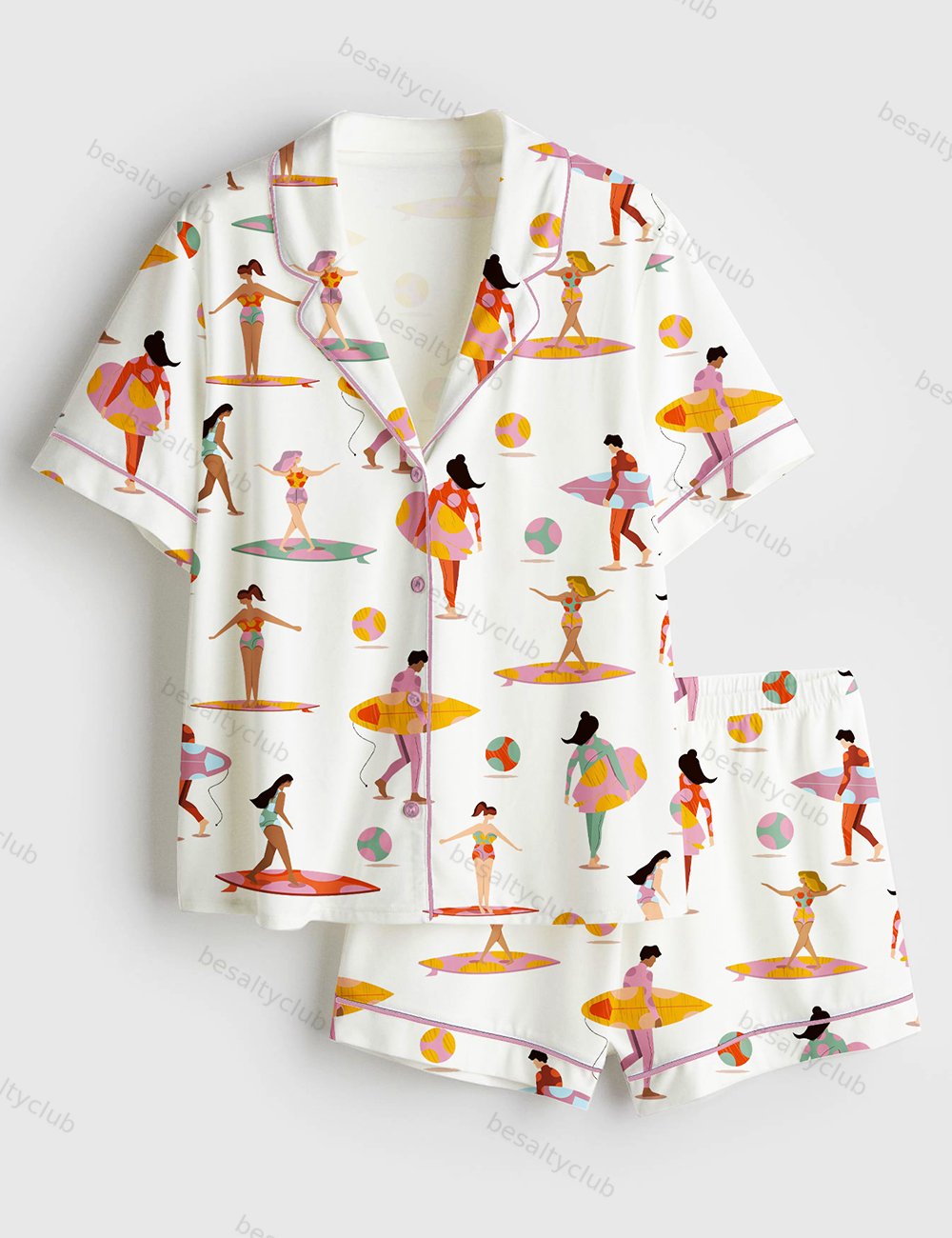 Surf Beach Hawaii Vacation Short Sleeve Satin Pajama Set