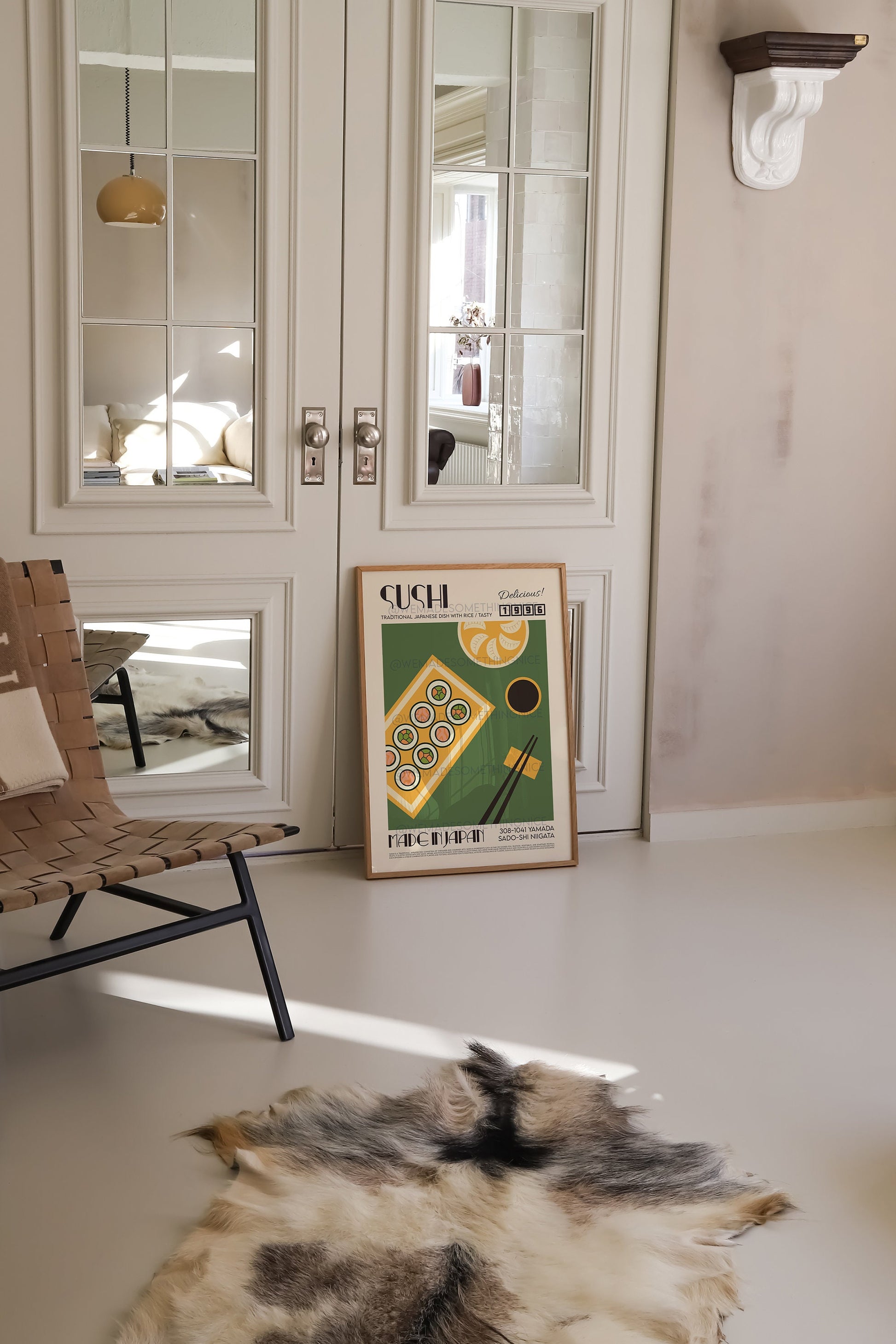 Sushi Poster, Kitchen Art, Kitchen Poster, Kitchen Print, Food Print, Illustration, Japanese Art, Exhibition Poster, Retro Wall Art