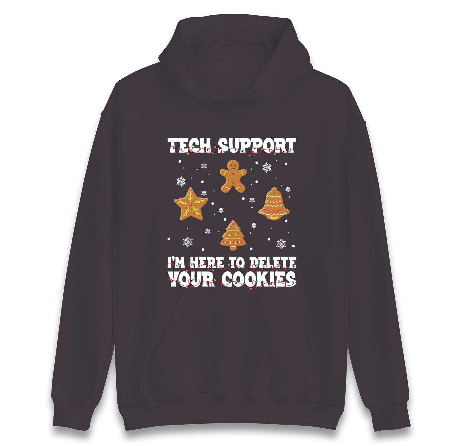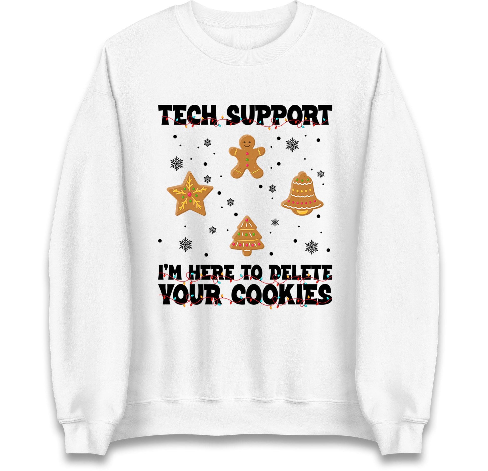 Tech Support Delete Your Cookies Christmas Jumper, Funny IT Xmas Hoodie, Geek Programmer Holiday T Shirt, Gingerbread Gift Top