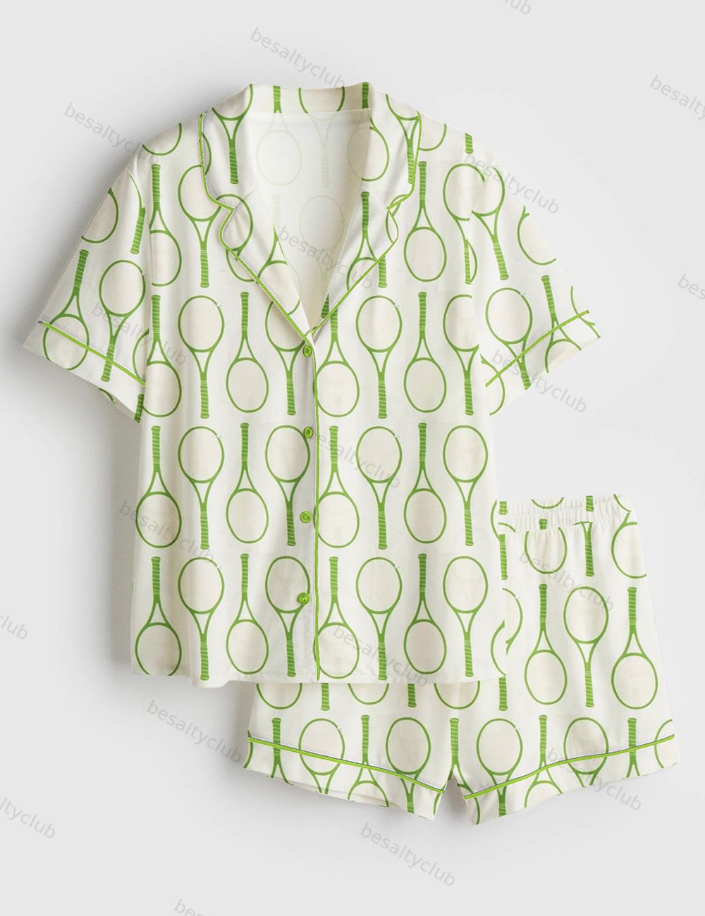 Tennis Time Tennis Lover Tennis Player Game Day Print Short Sleeve Satin Pajama Set