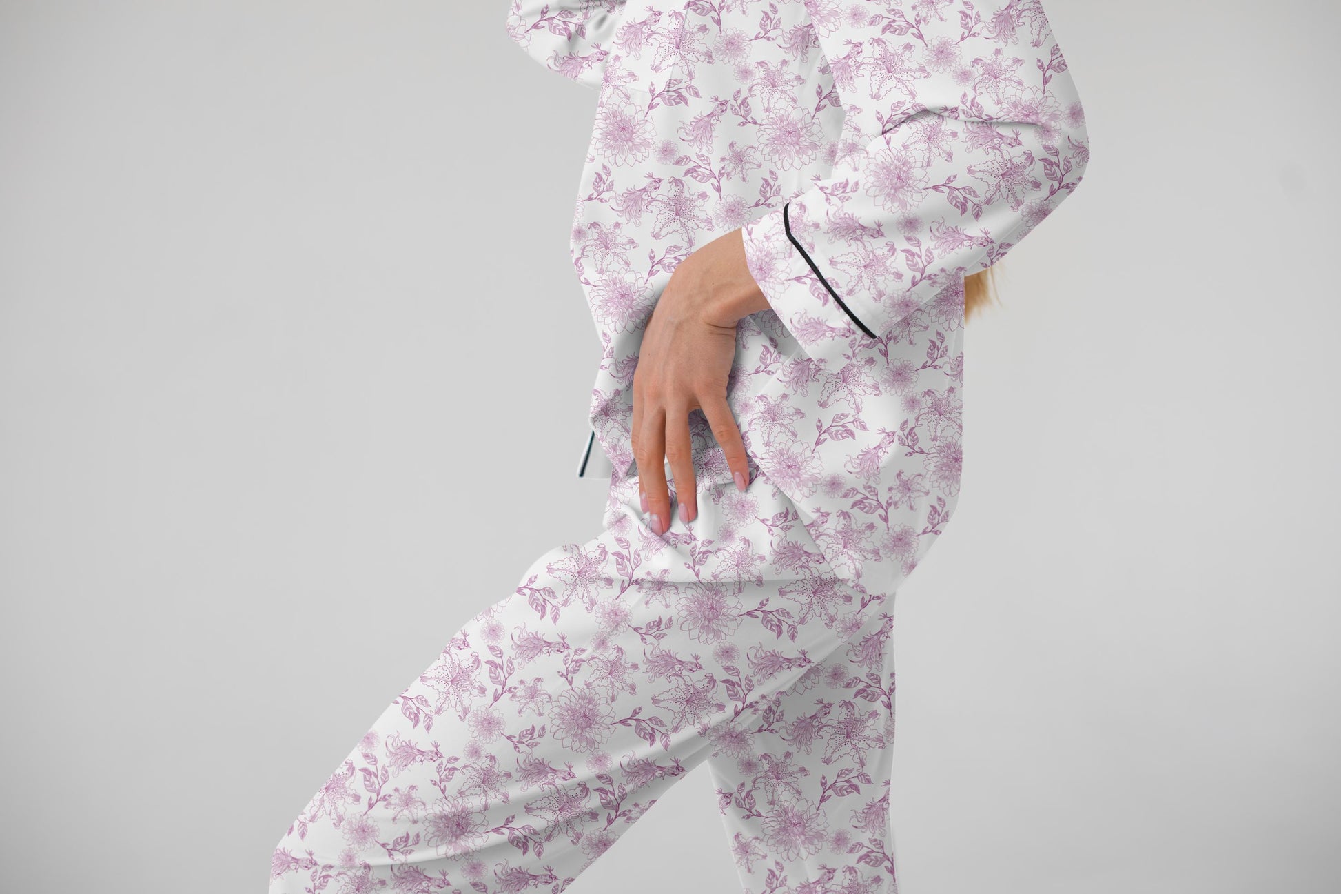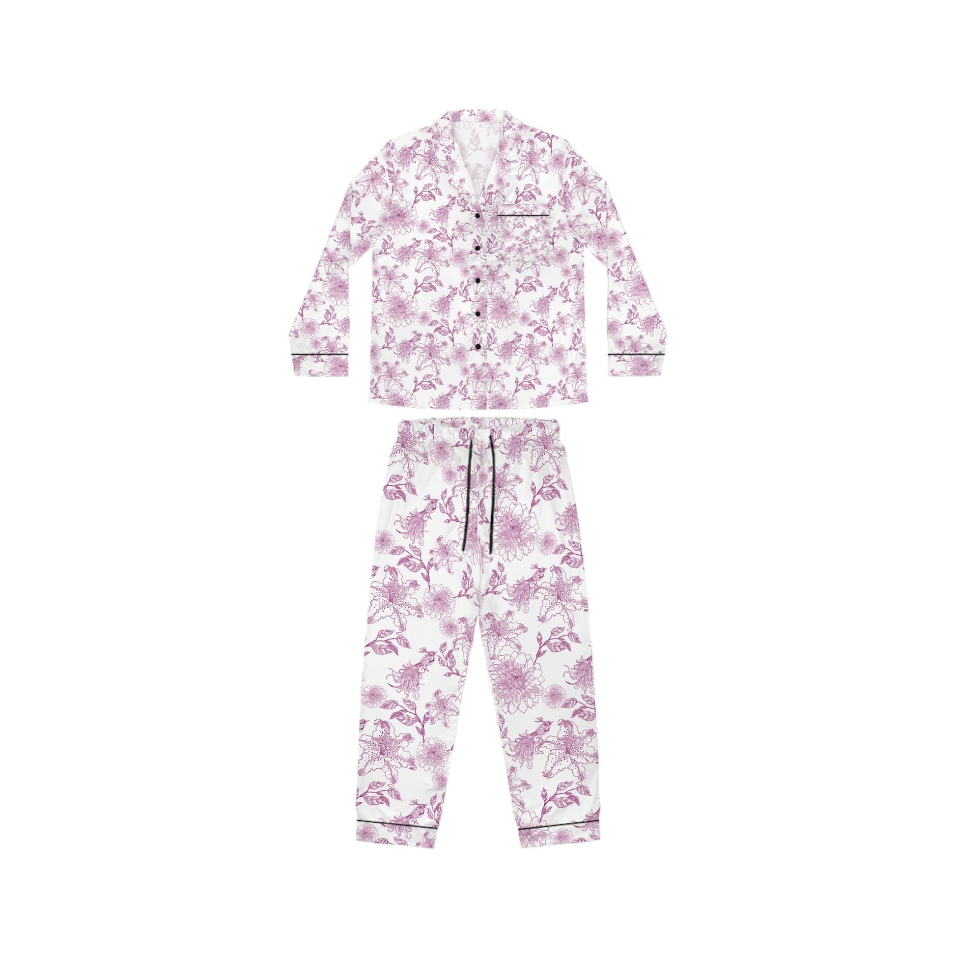 Toile de Jouy Inspired Bridal Pajama Set – Satin Getting Ready Outfit for Brides and Bridesmaids