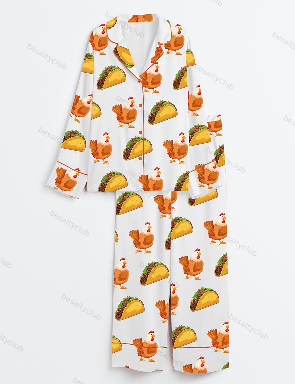 Trump Always Chickens Out Political Humor Long Sleeve Satin Pajama Set