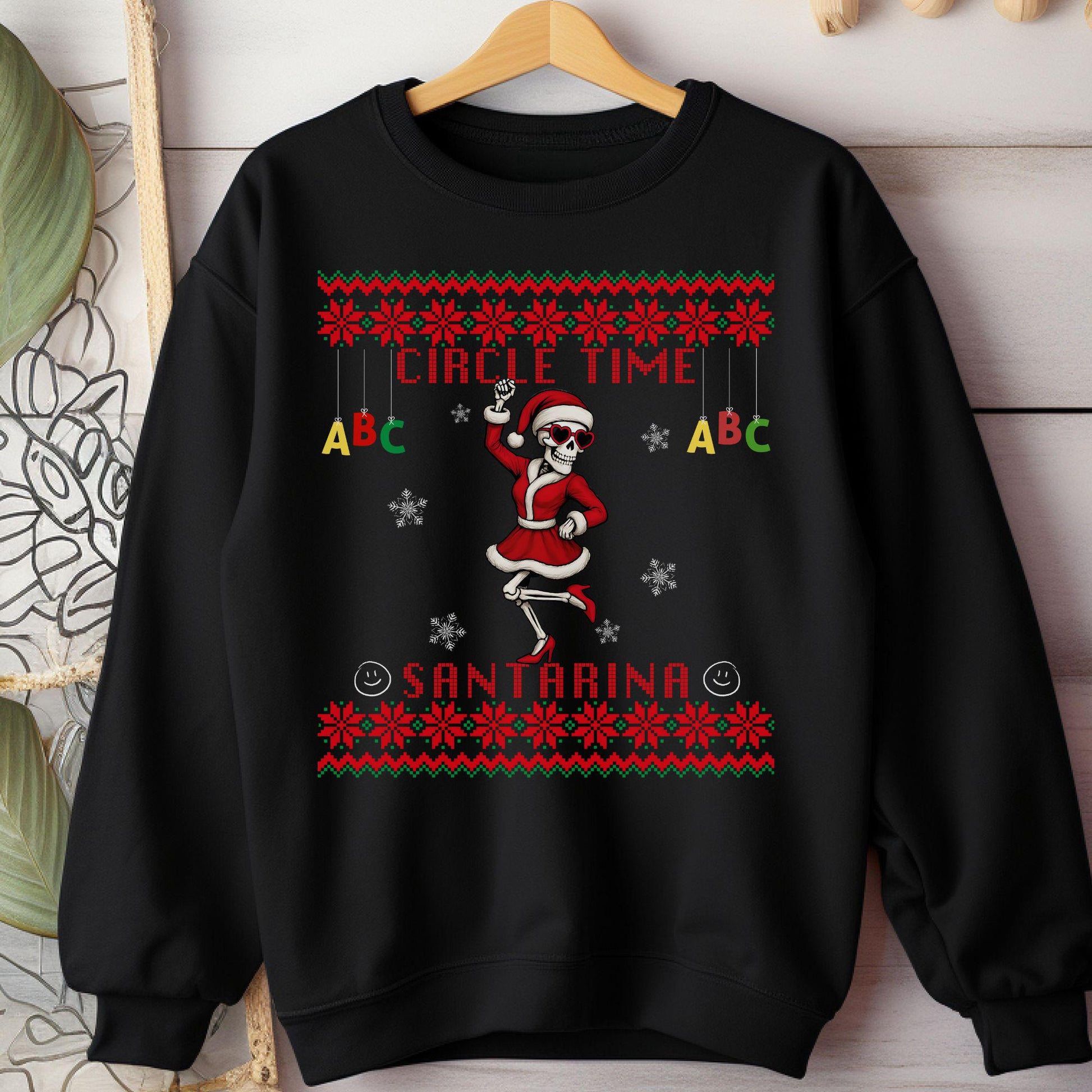 Ugly Christmas For Pre-K Teacher Christmas Skeleton Santa Sweatshirt Funny Christmas for Teacher Ugly Xmas