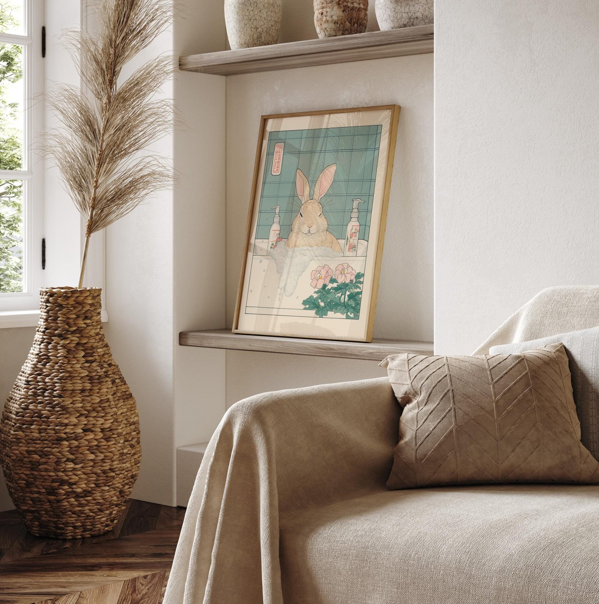Ukiyo-e Bunny Print: Funny Rabbit in Bathtub, Japanese Art