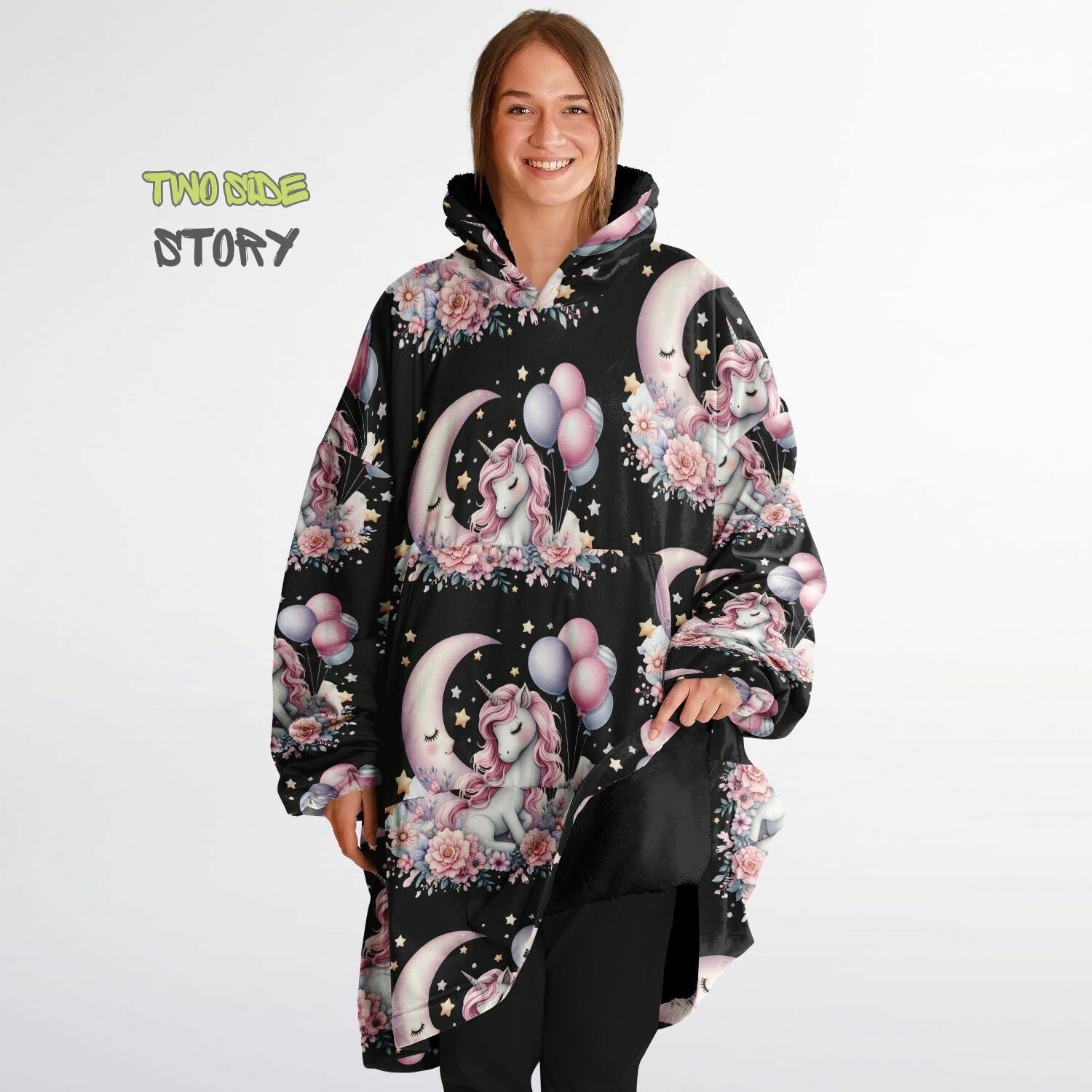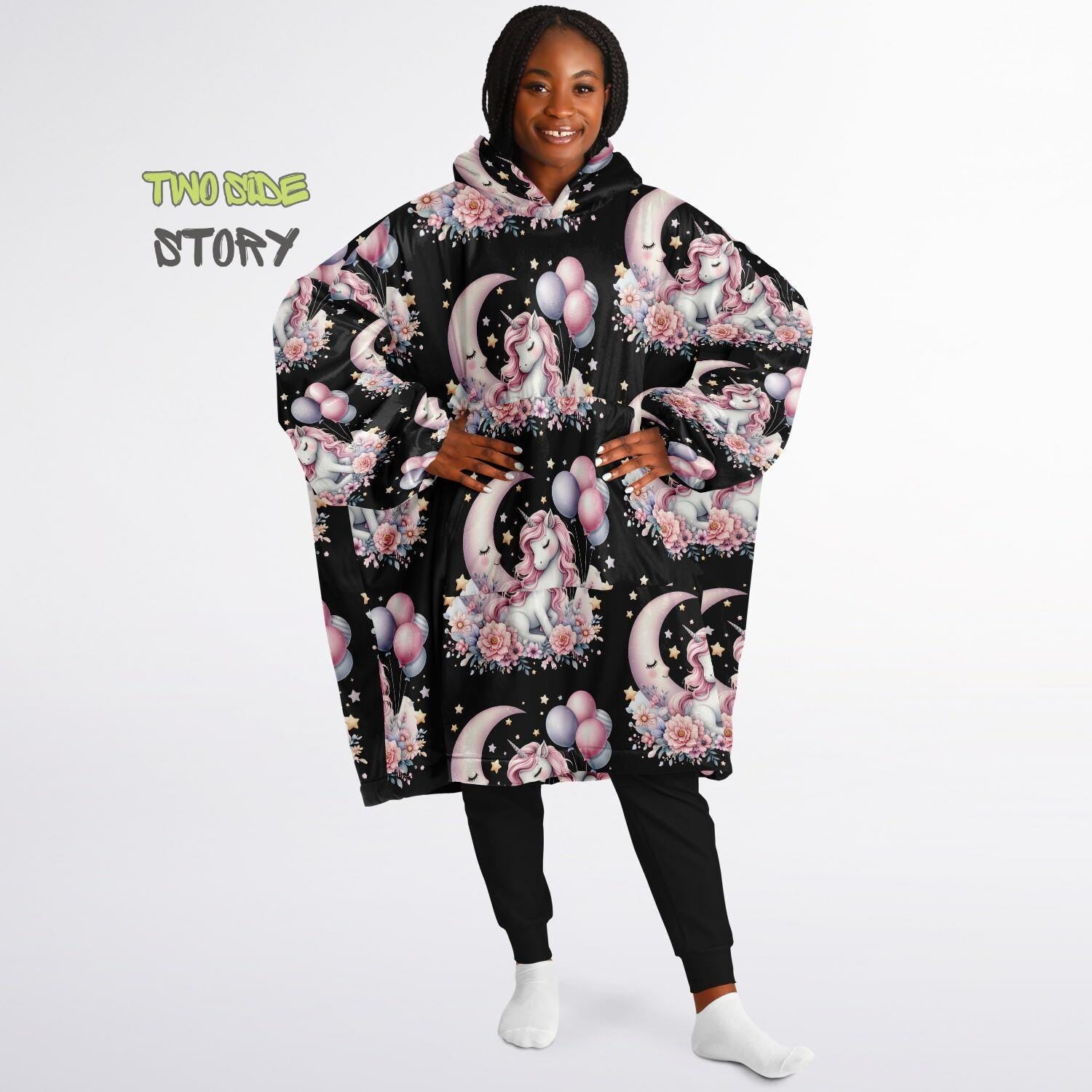 Unisex Cute Kawaii Unicorn Print Snug Hoodie,Printed Hooded Blanket with Sleeves, Lounge Wear, Novelty Gifts, Birthday Gift ,Christmas Gifts