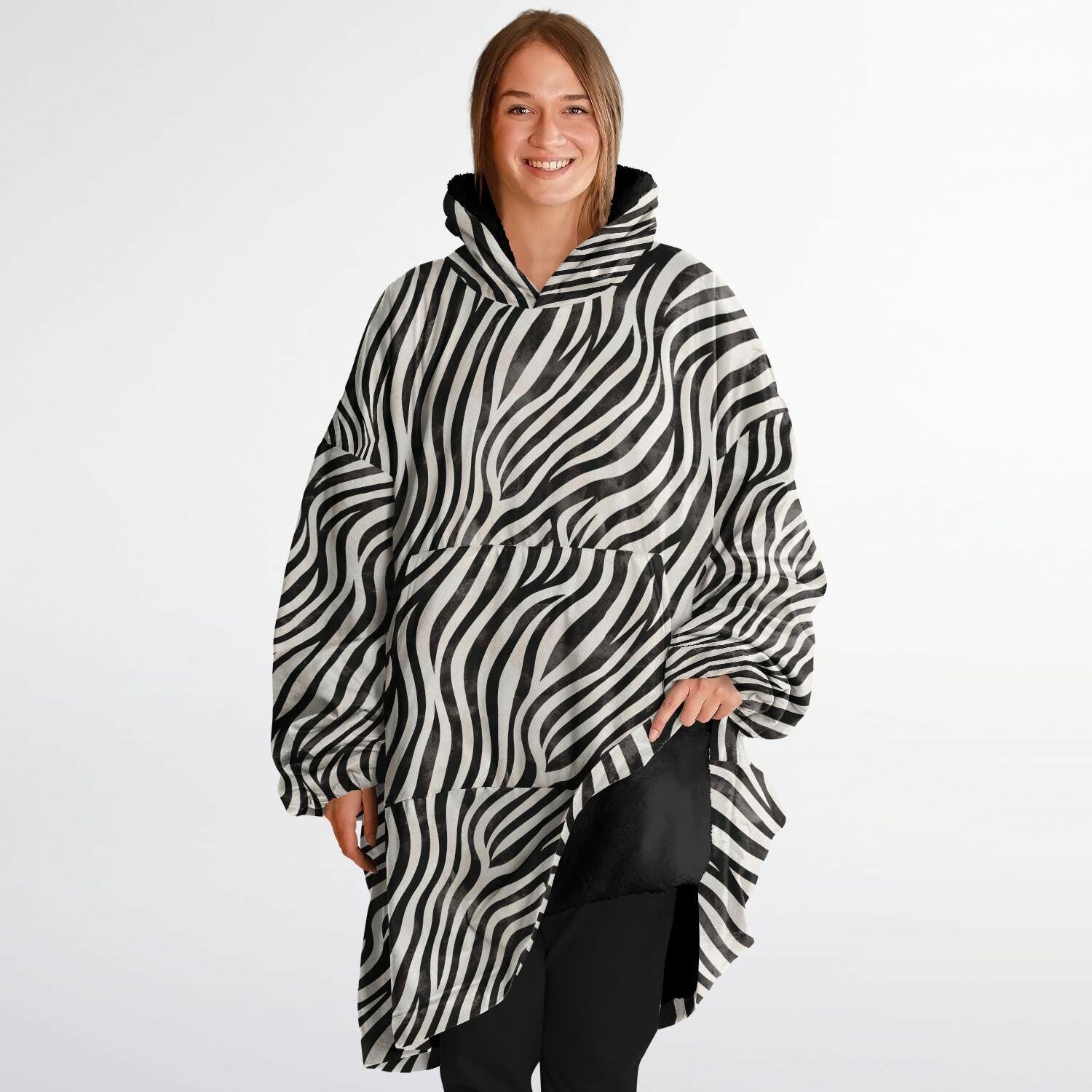 Unisex Cute y2k Zebra Print Snug Hoodie,Printed Hooded Blanket with Sleeves,Lounge Wear,All Over Print Hoodie, Birthday Gift,Christmas Gifts