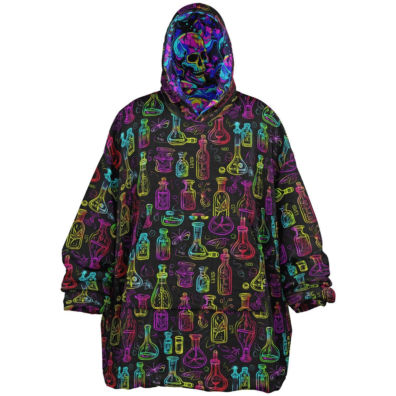 Unisex Neon Skulls Halloween Print Reversible Snug Hoodie,Festival Rave Party Wear,Oversized Double Sided Hoodie Blanket,Unique Gifts