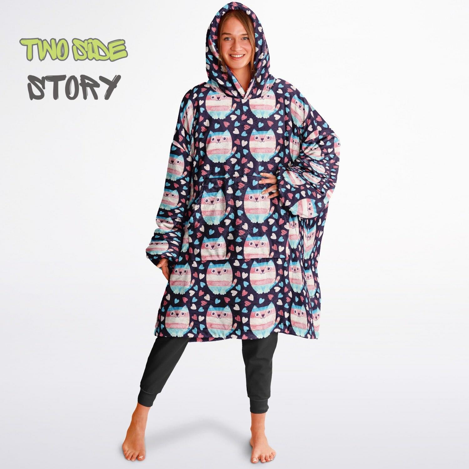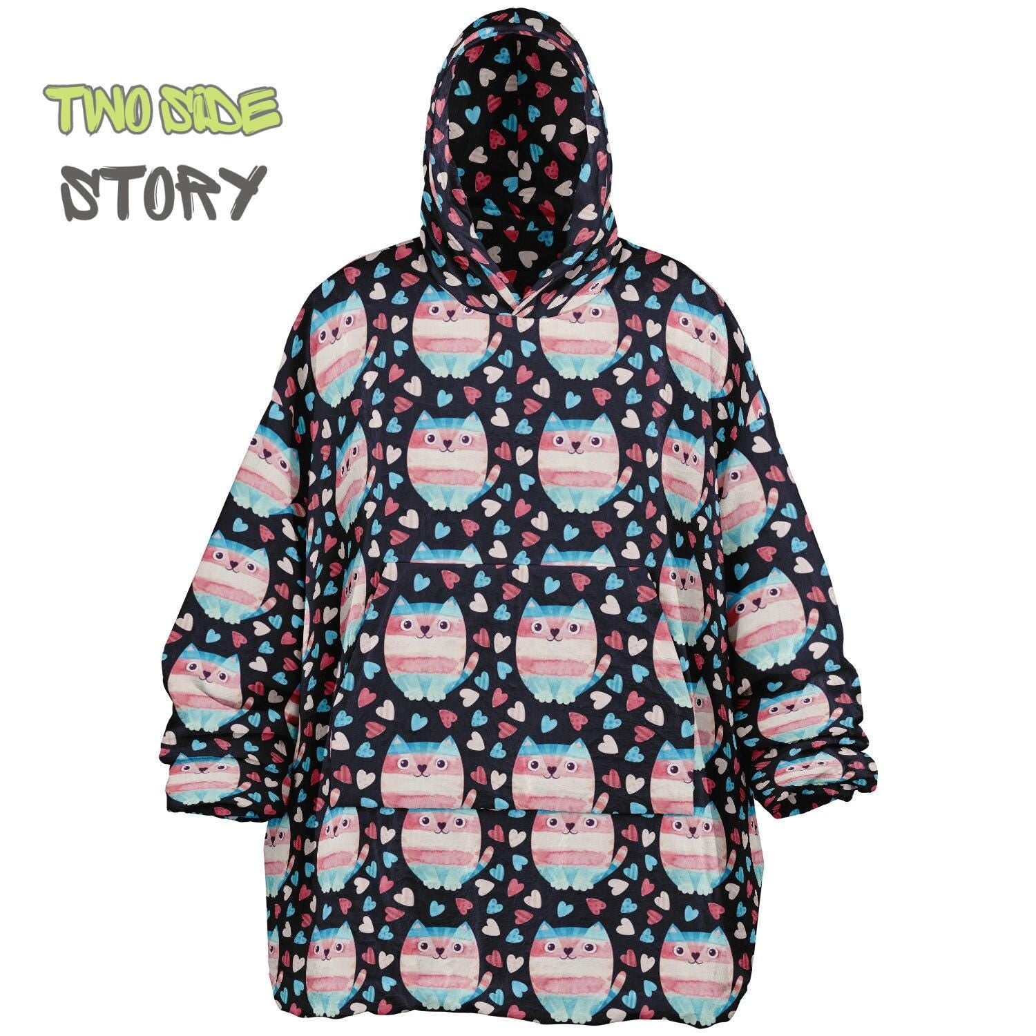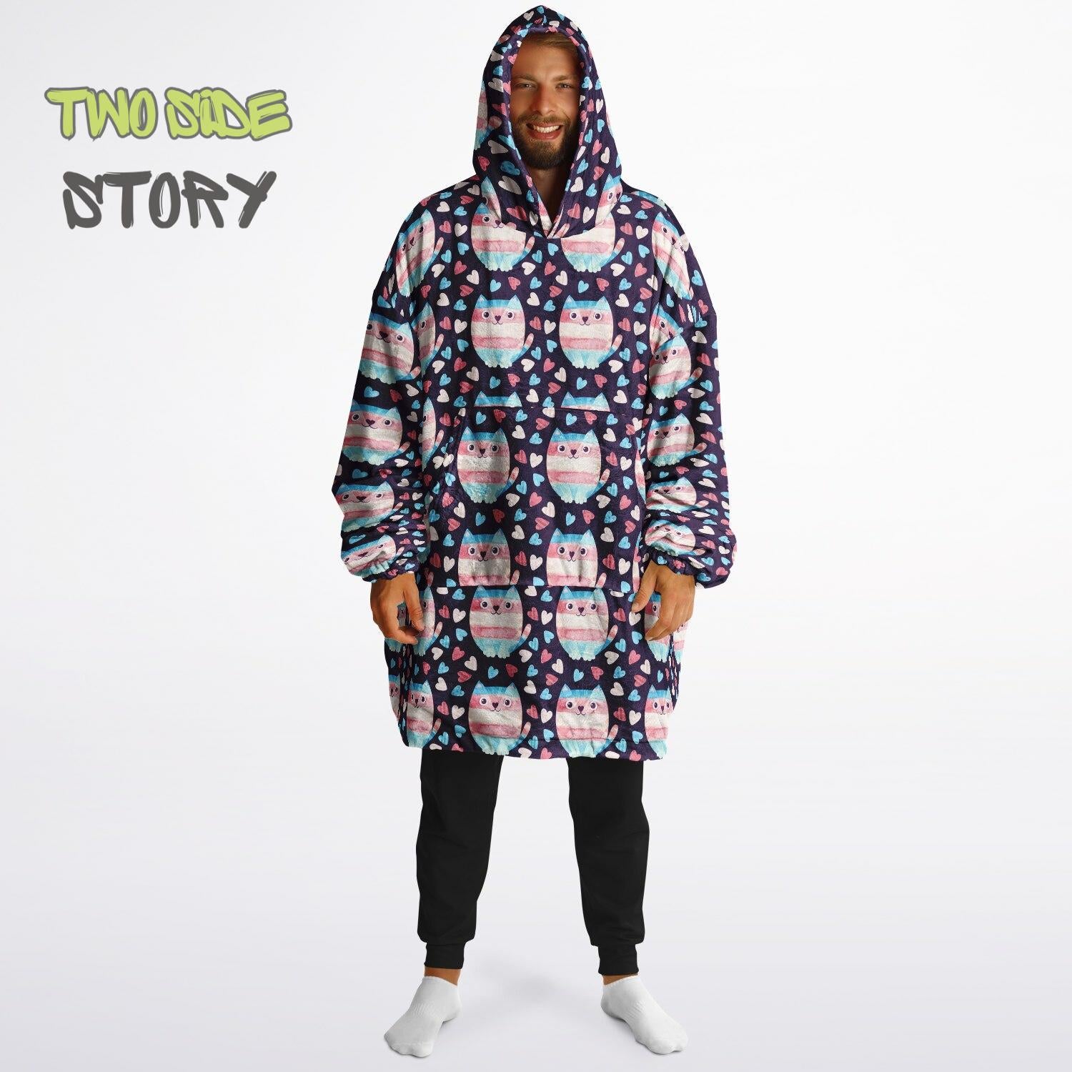 Unisex Reversible Adult Snug Hoodie,Trans Flag Reversible Oversized Hoodie Blanket,Lounge Wear,Unique Gifts,Christmas Gift,Dog Lover Gift