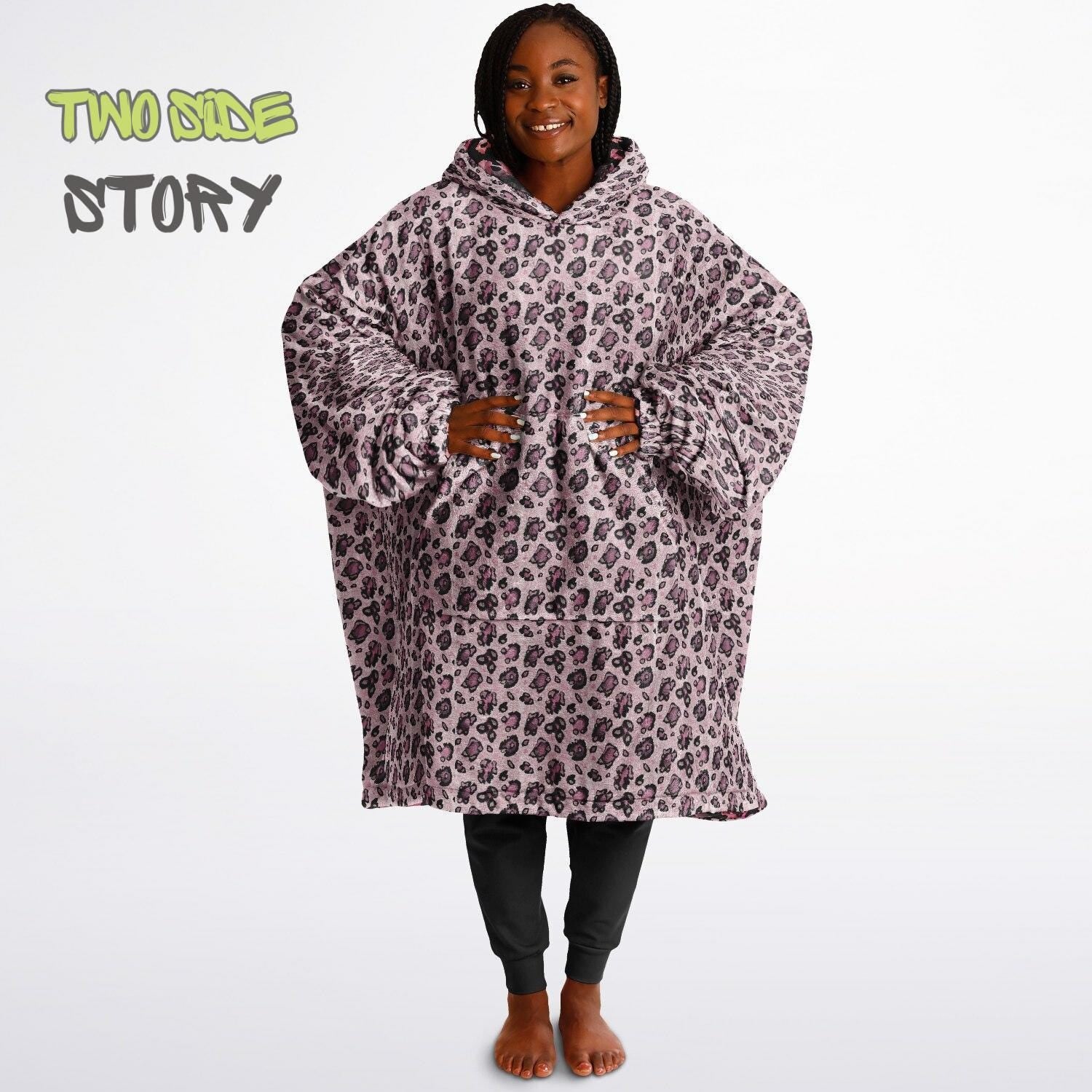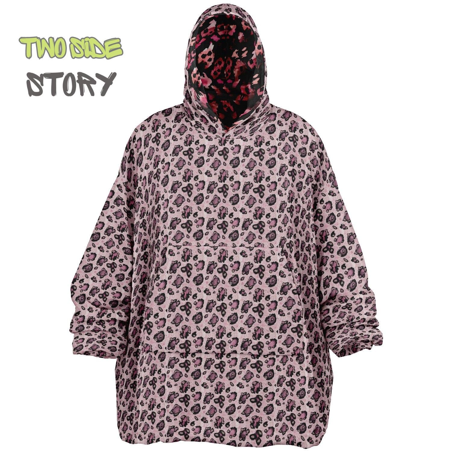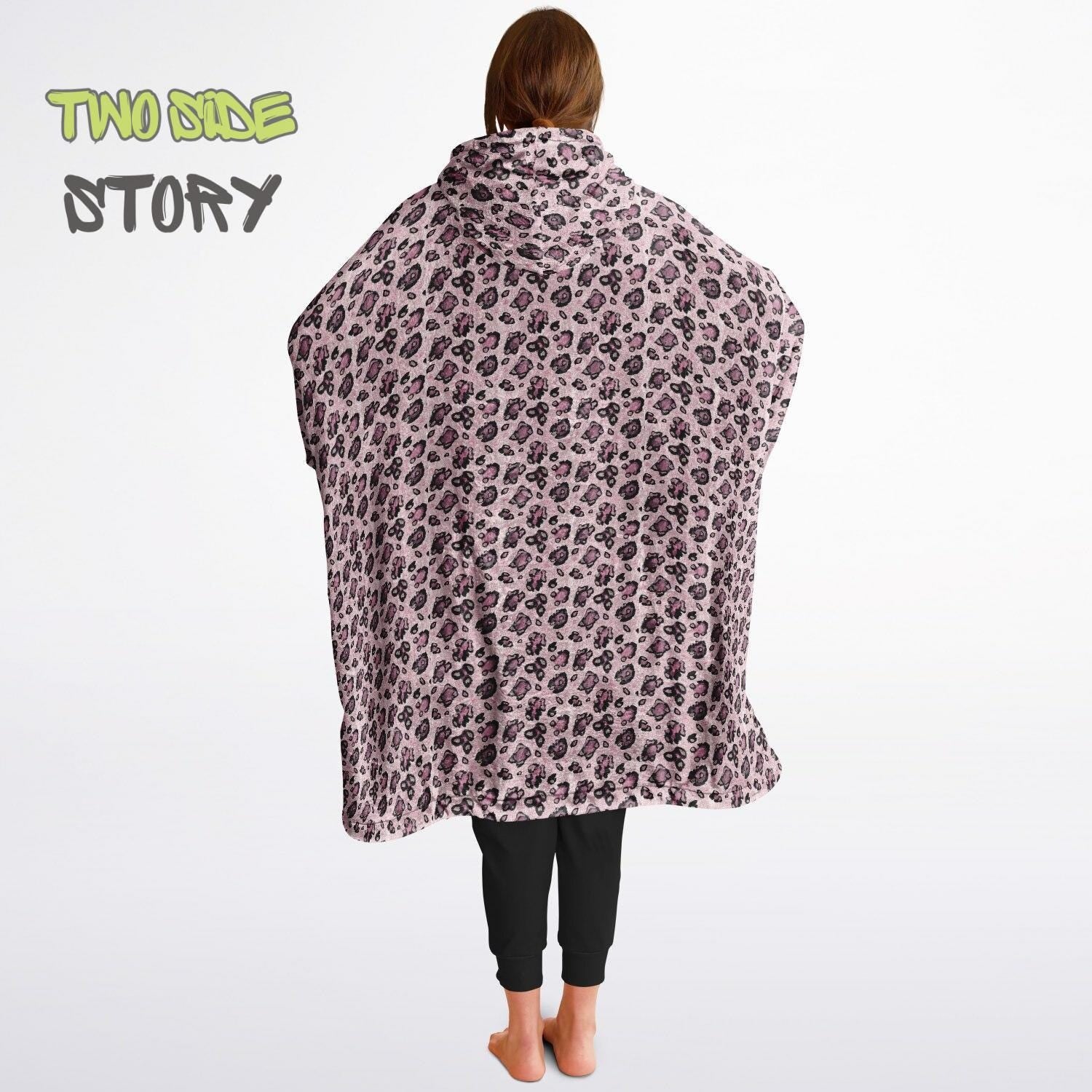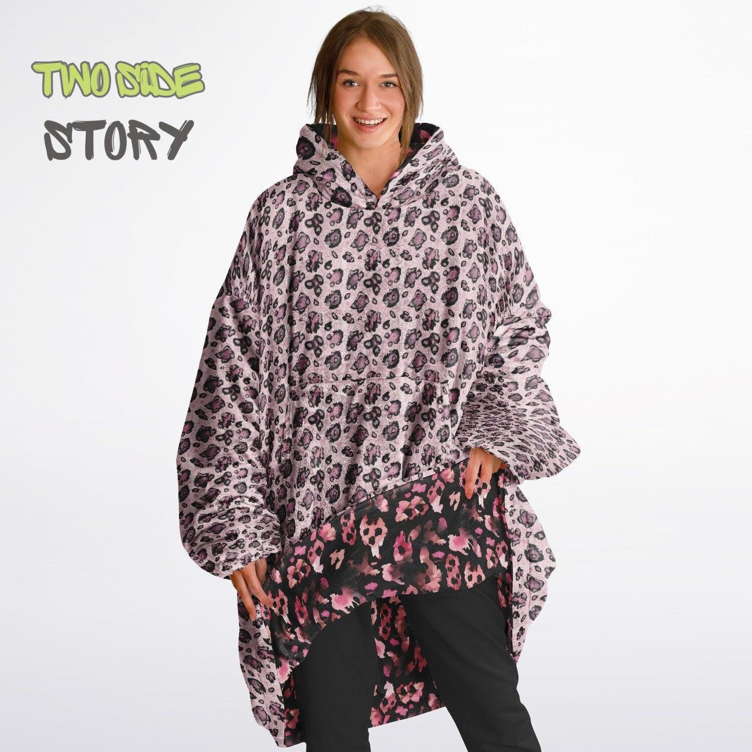 Unisex Reversible Pink Leopard Print Adult Snug Hoodie,Reversible Oversized Hoodie Blanket,Lounge Wear,Unique Gifts,Christmas Gift,Gifts
