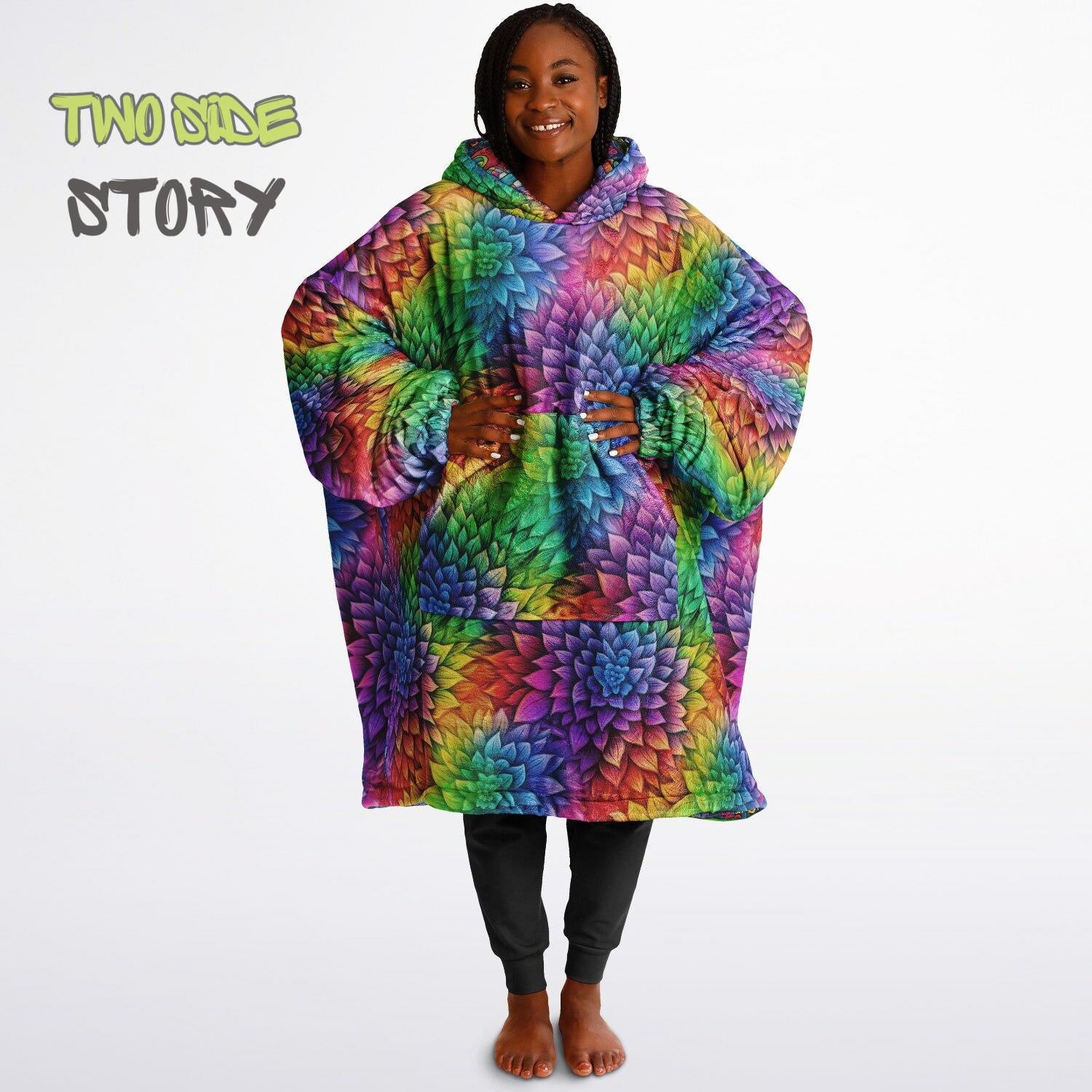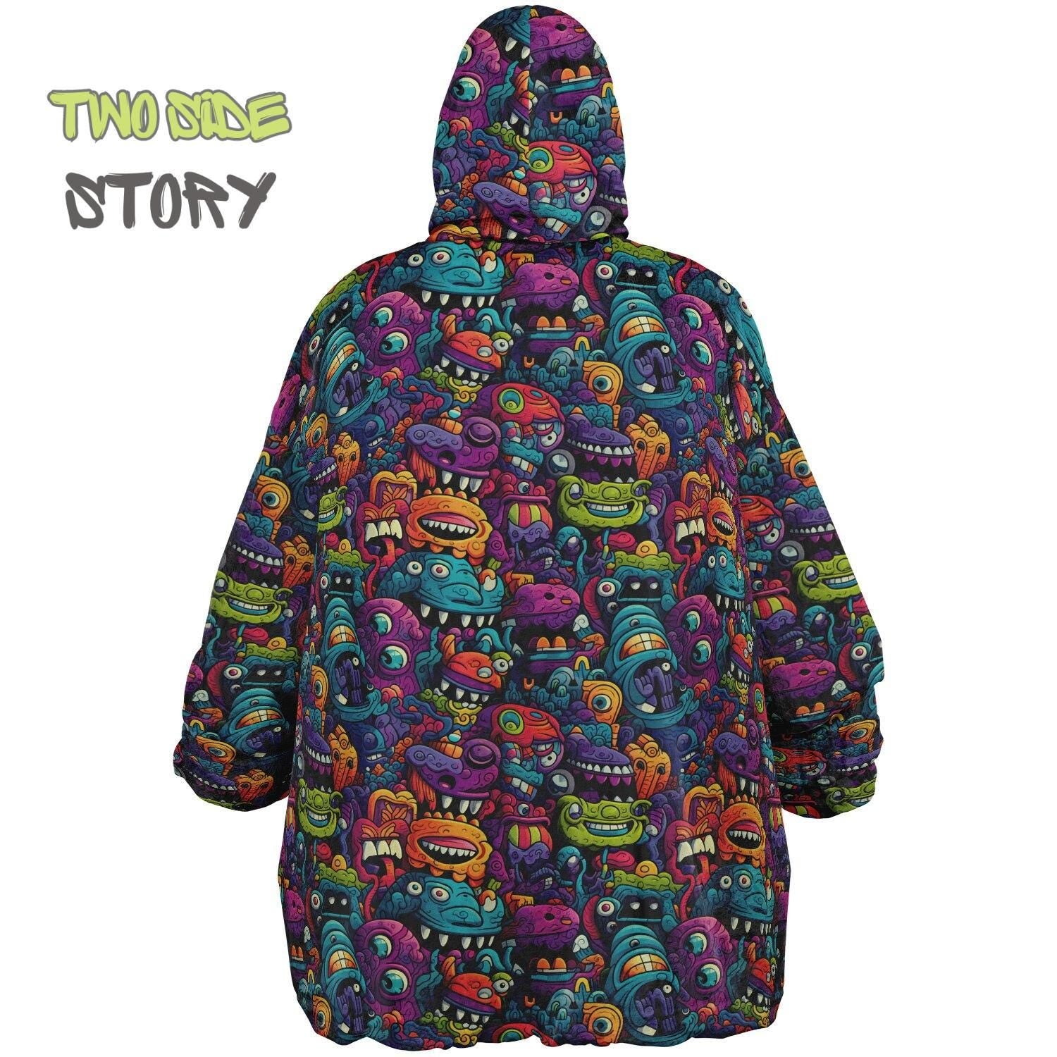 Unisex Reversible Snug Hoodie,Monsters Psychedelic Autumn Reversible Hoodie Blanket,Festival Rave Party Wear,Oversized Hoodie Blanket, Gifts