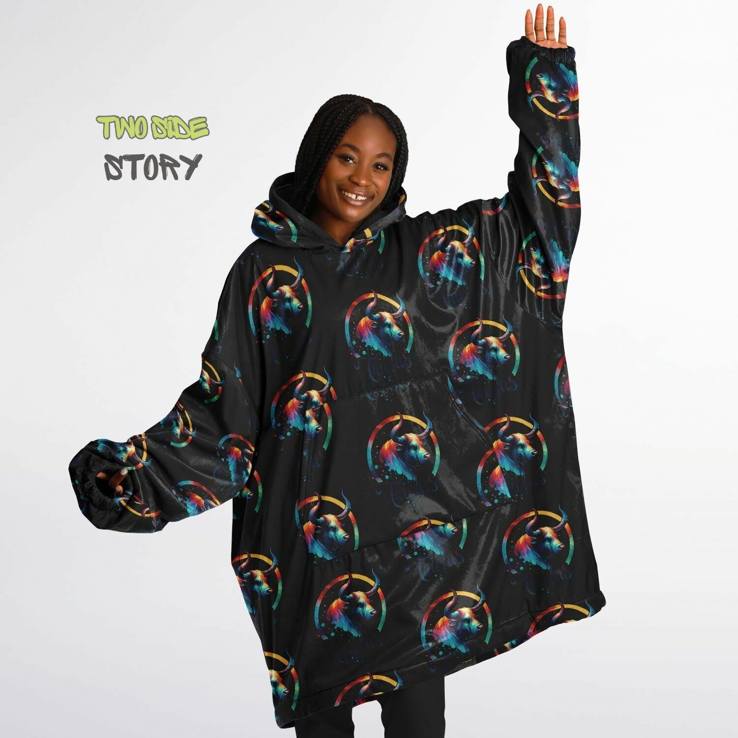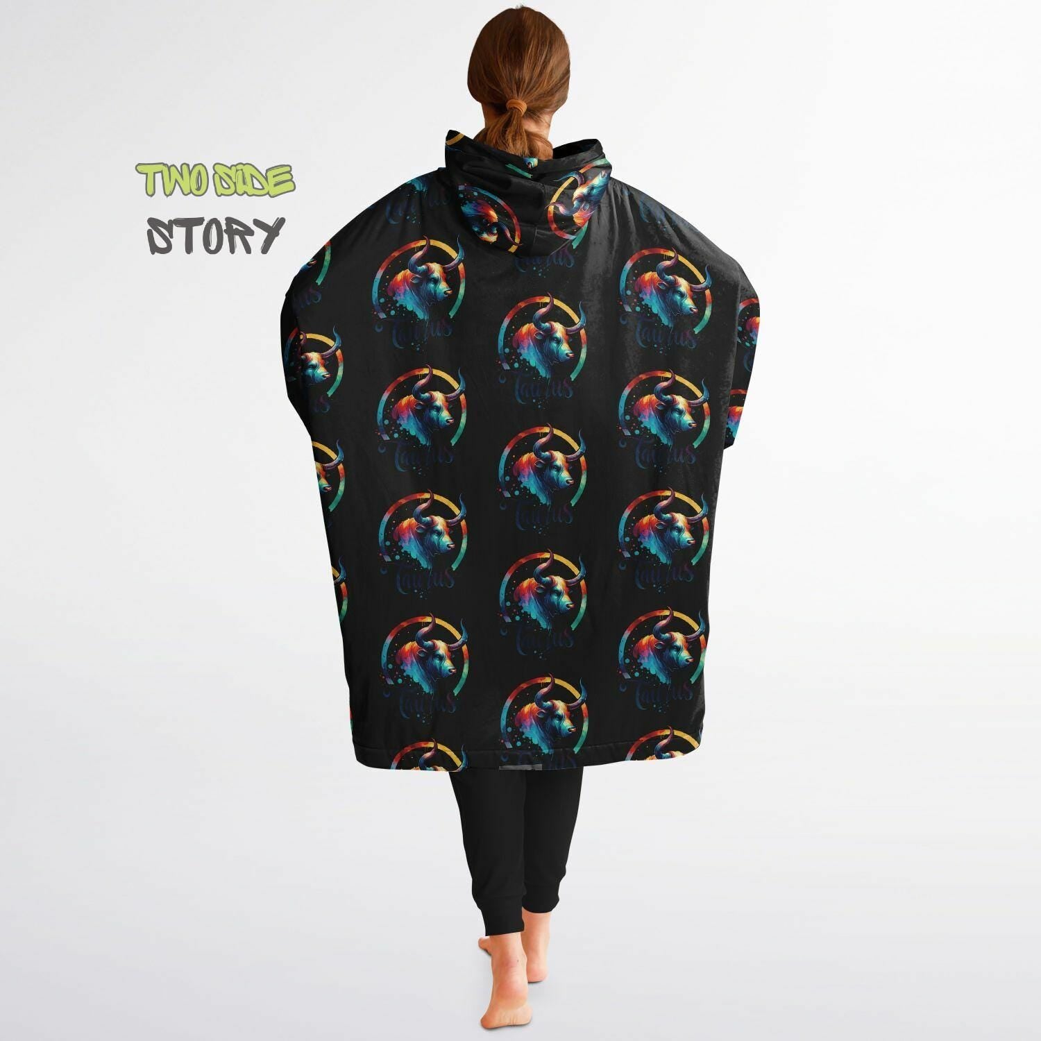 Unisex Taurus Star Sign Print Snug Hoodie,Printed Hooded Blanket,Blanket Sleeves,Lounge Wear,Unique,Novelty Gifts, birthday Christmas Gift