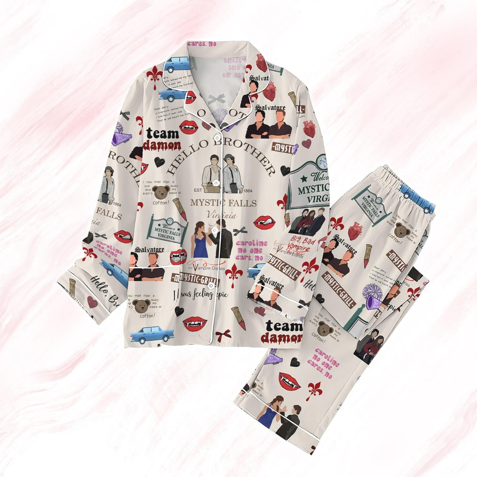 Vampire Diaries Pajamas Set, Hello Brother Holiday Pajamas, Team Damon Pajamas Family, Salvatore Brothers Pajamas, Valentine Gift
