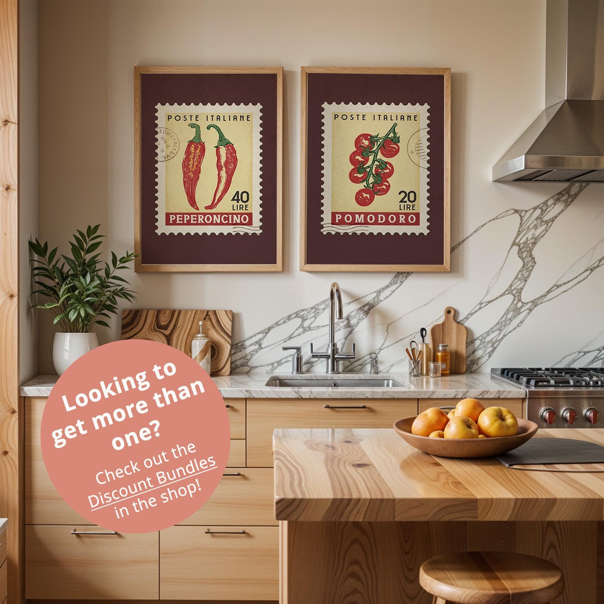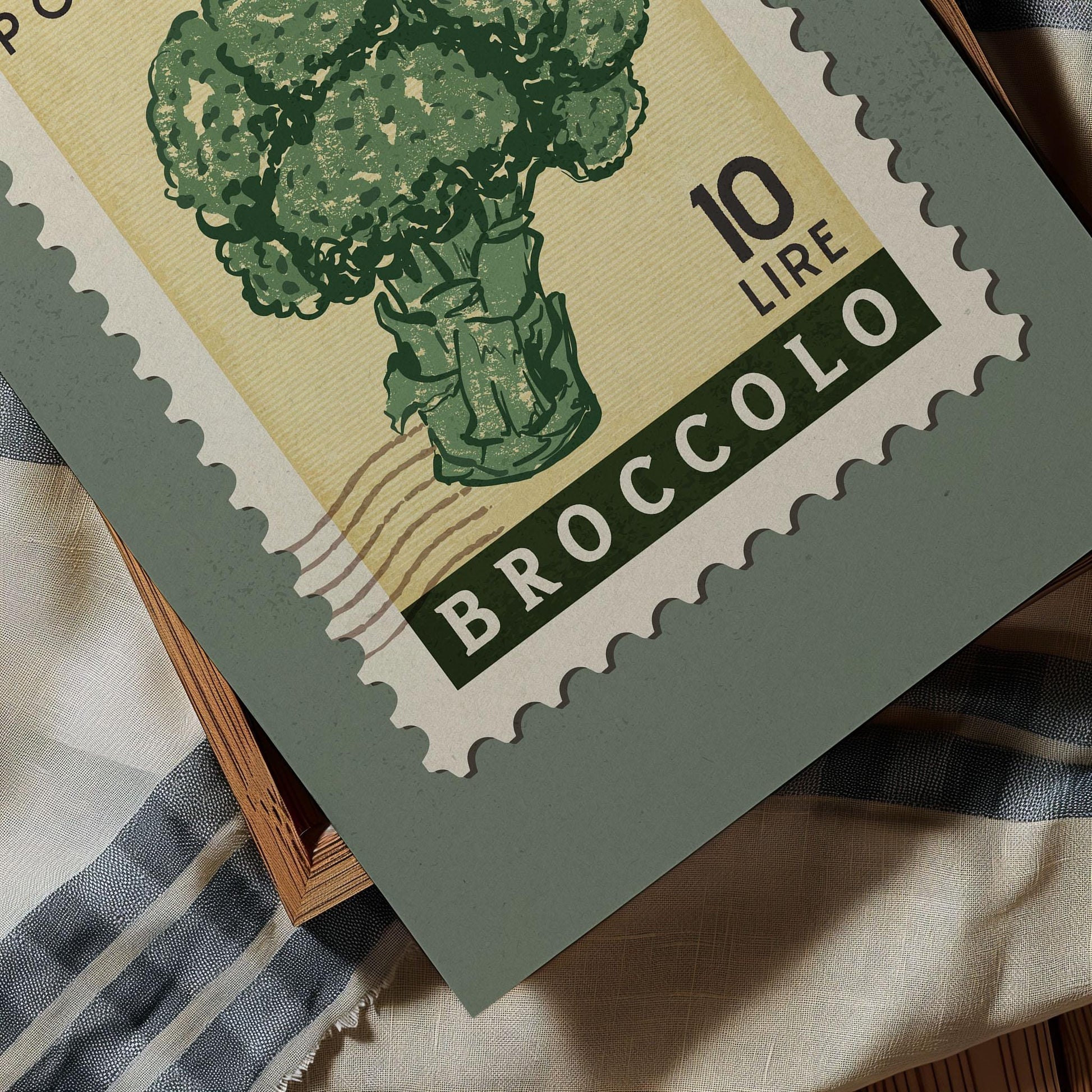 Vintage Broccoli Poster, Italian Food Art Print | Retro Kitchen Print | Retro Stamp Poster, Trendy Kitchen Art, Food Gift Ideas