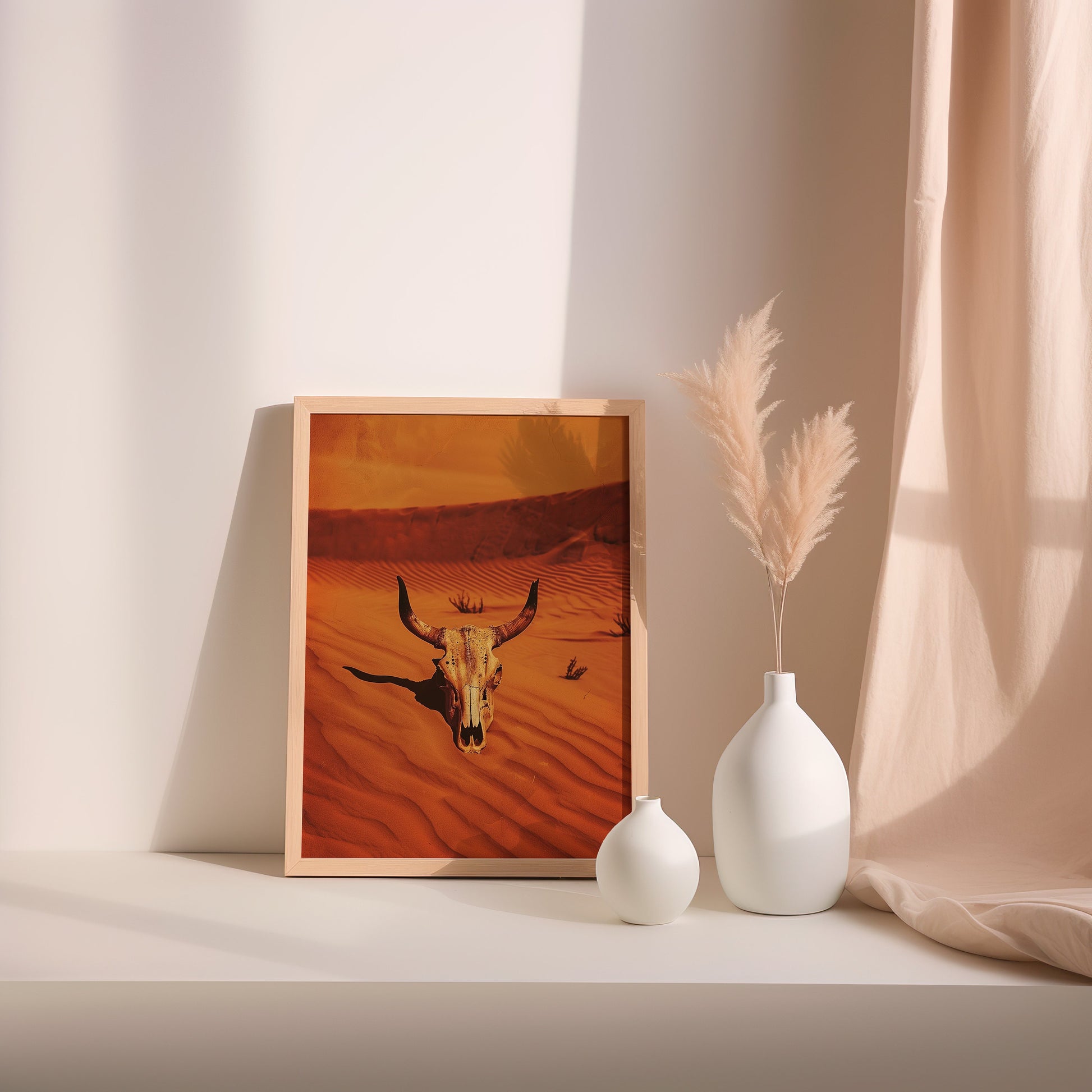 Vintage Cow Skull Western Art Print Retro Cowboy Cowgirl Art Southwestern Boho Art Sonoran Desert Arizona Print Terracotta Orange Sunset