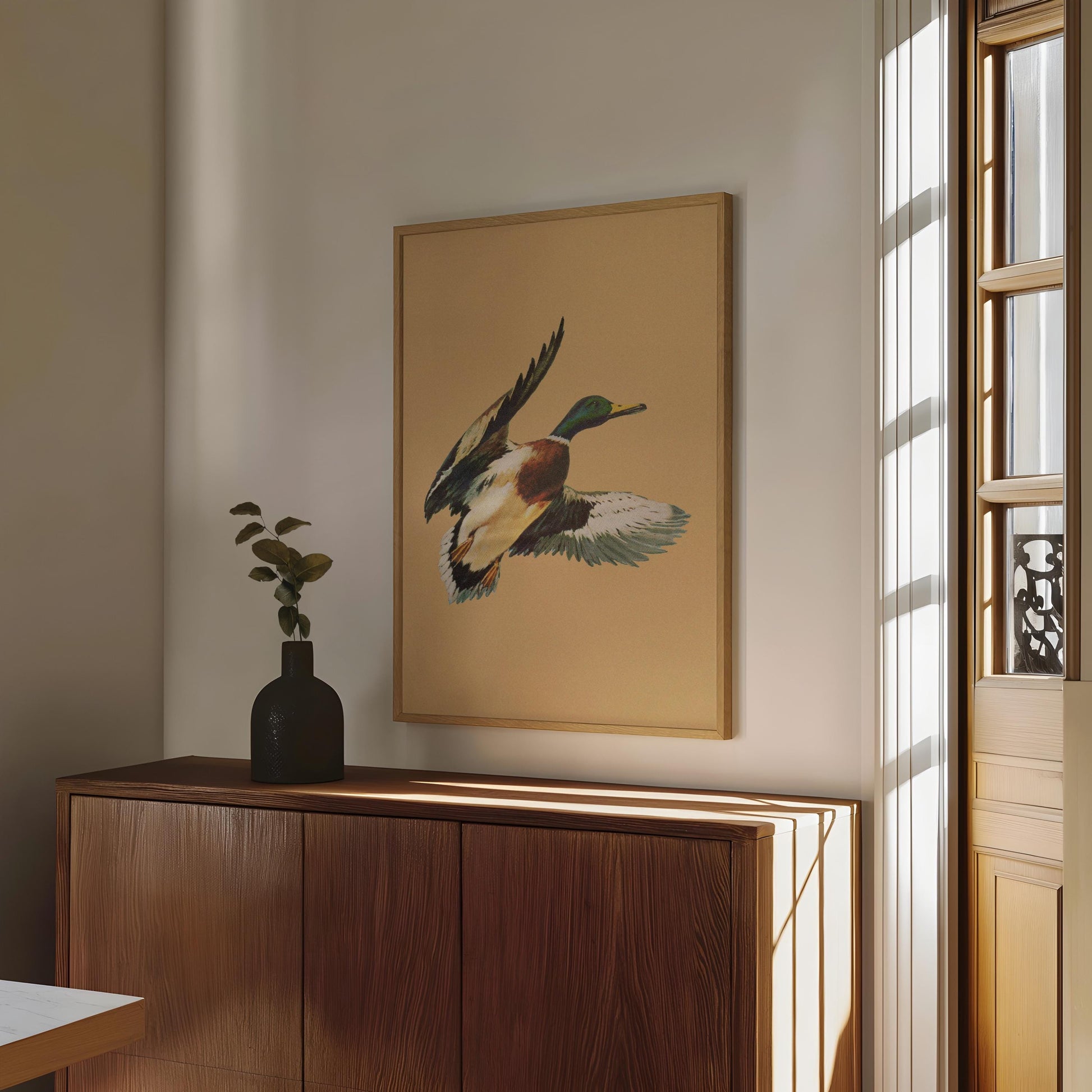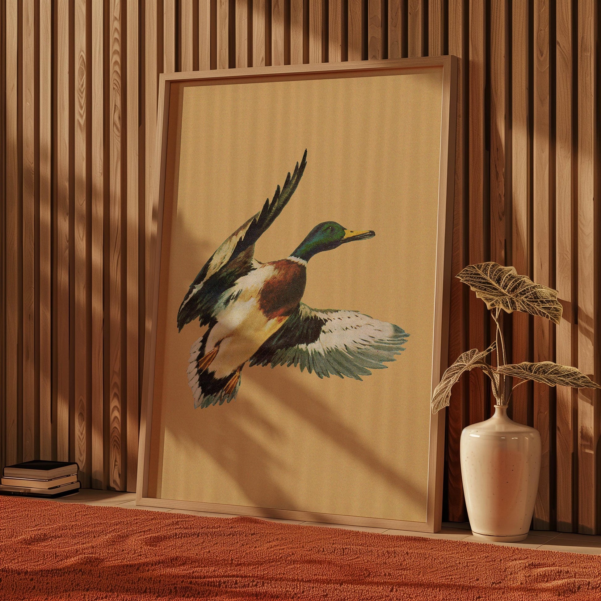 Vintage Flying Mallard Print Retro Outdoors Magazine Screen Print Styled Poster Cabin Cottage Wall Art Waterfowl Duck Hunting Poster for Dad