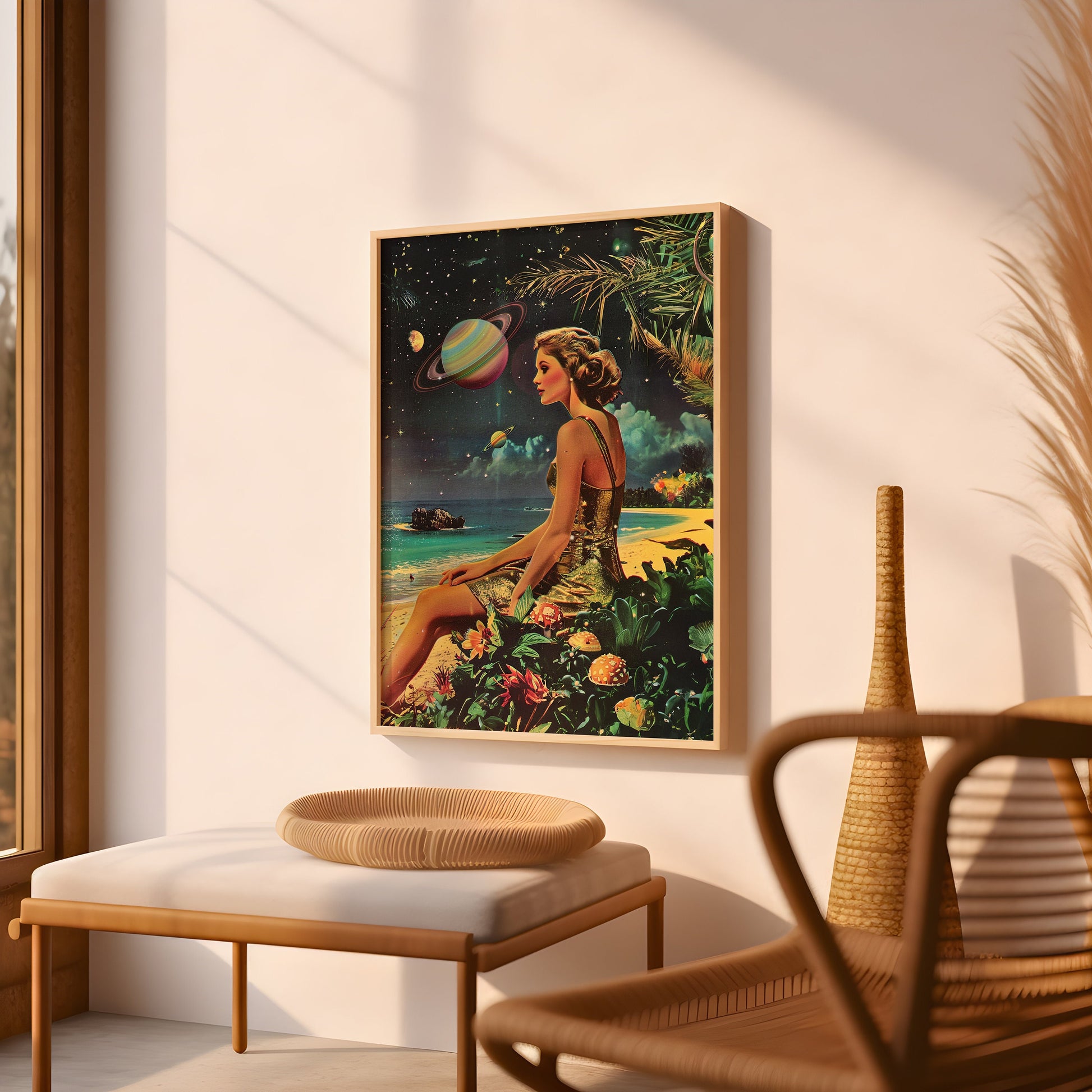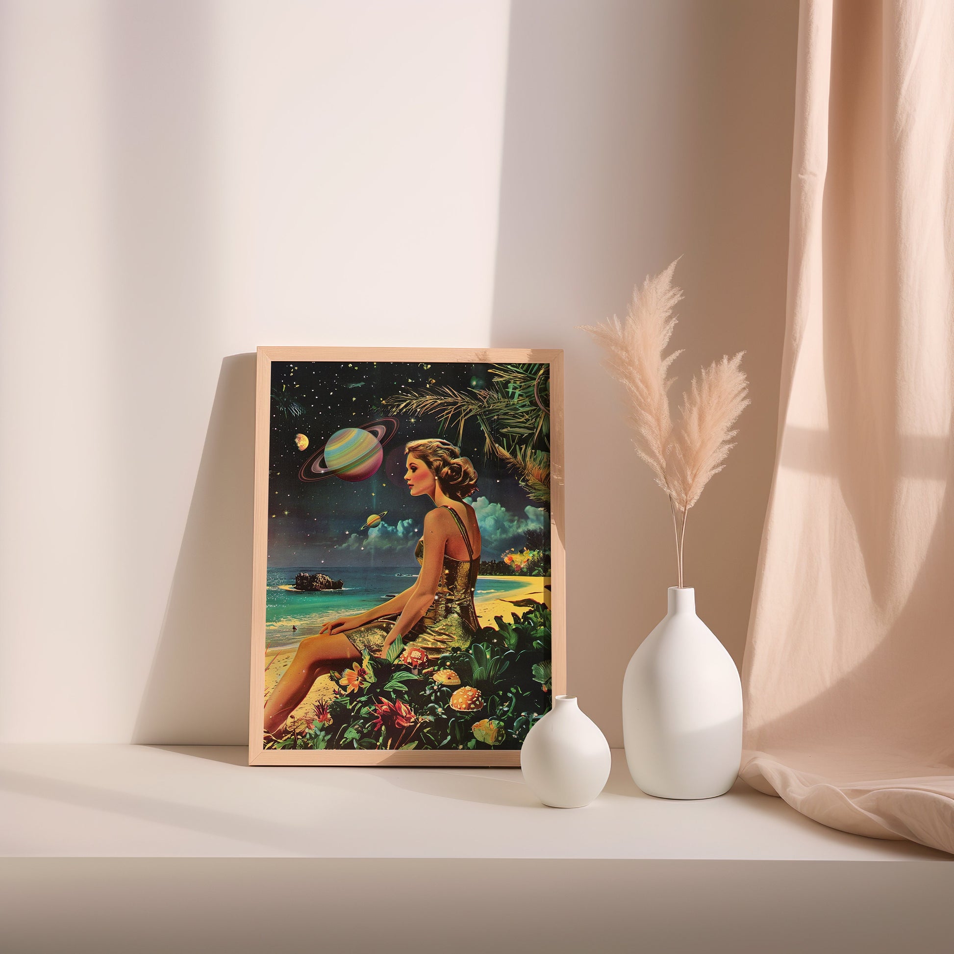 Vintage Vogue Surrealism Styled Magazine Poster, Outer Space Trippy Art, Fashion Magazine Wall Art Print, Vogue Art Print, Psychedelic Art