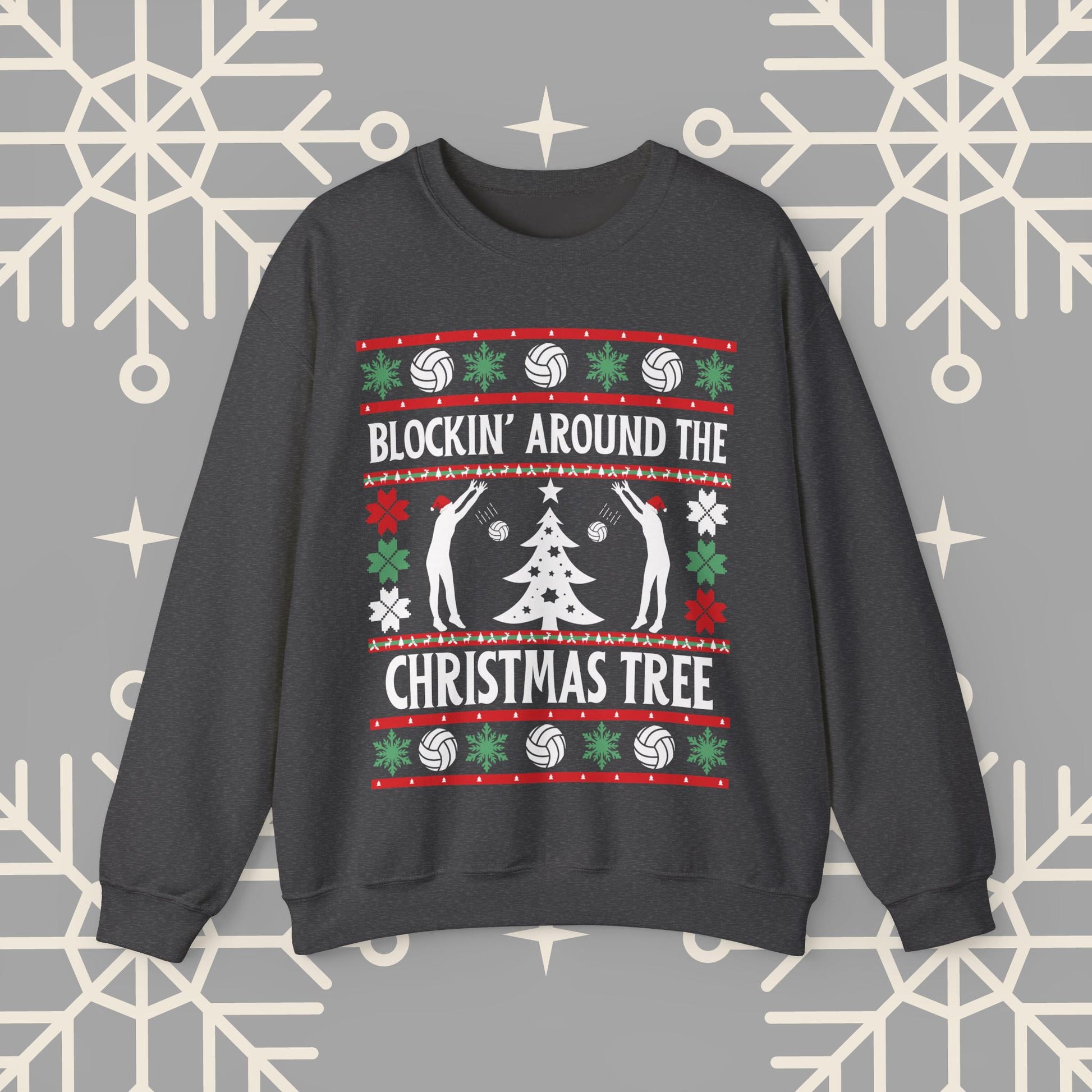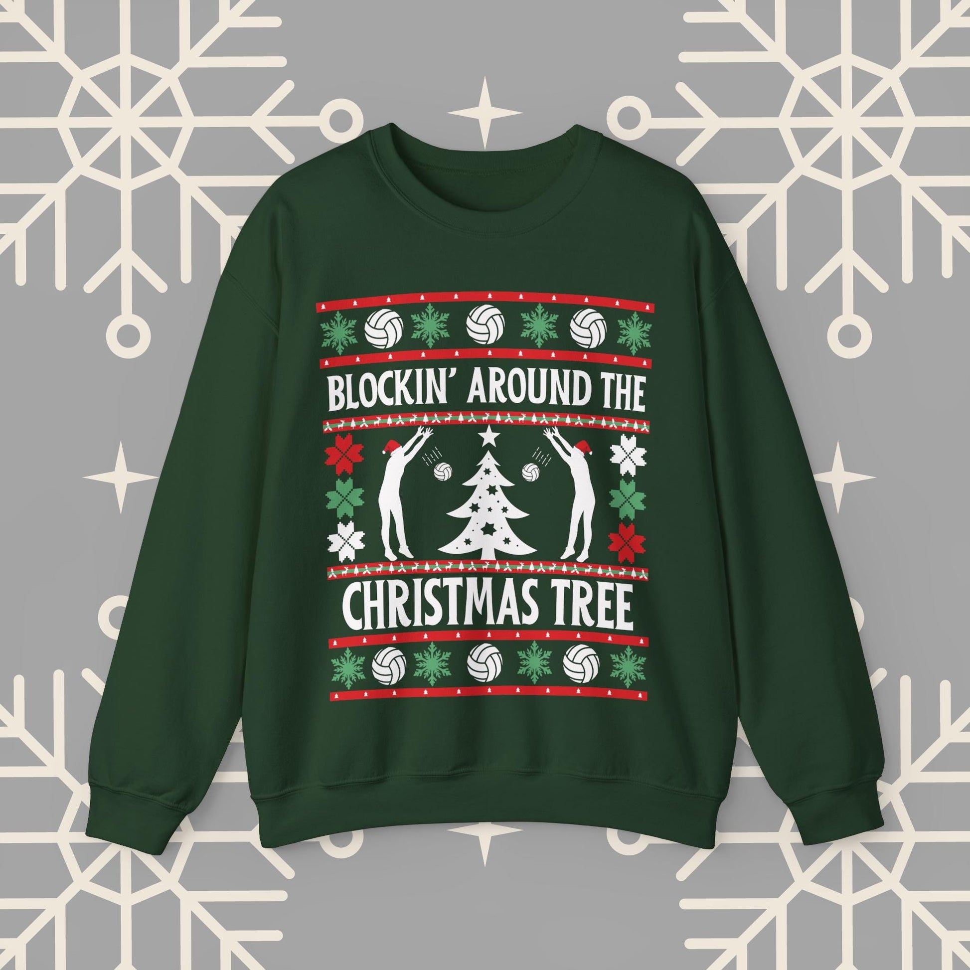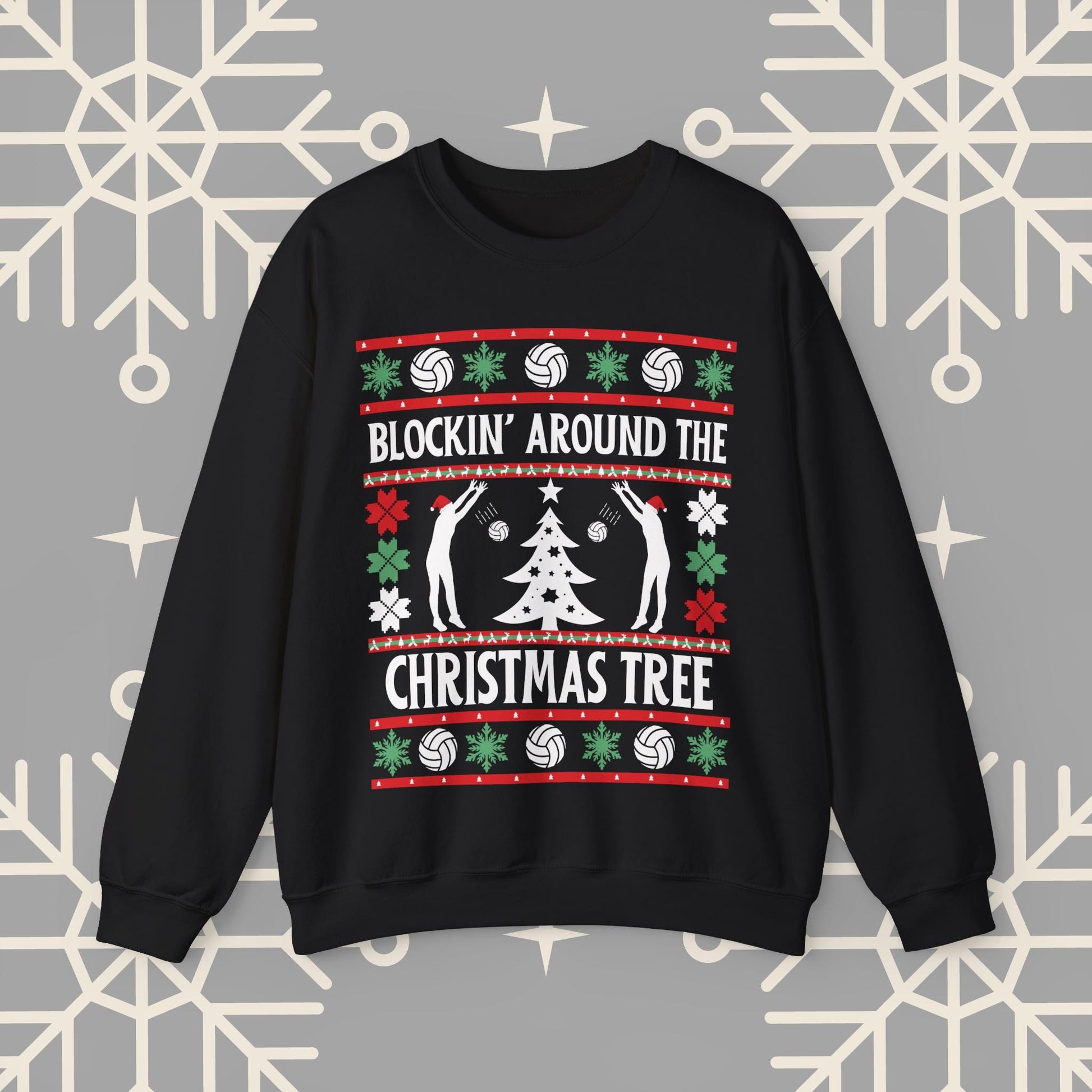 Volleyball Ugly Christmas , Blockin' Around the Christmas Tree Sweatshirt, Funny Holiday Crewneck, Gift for Volleyball Player