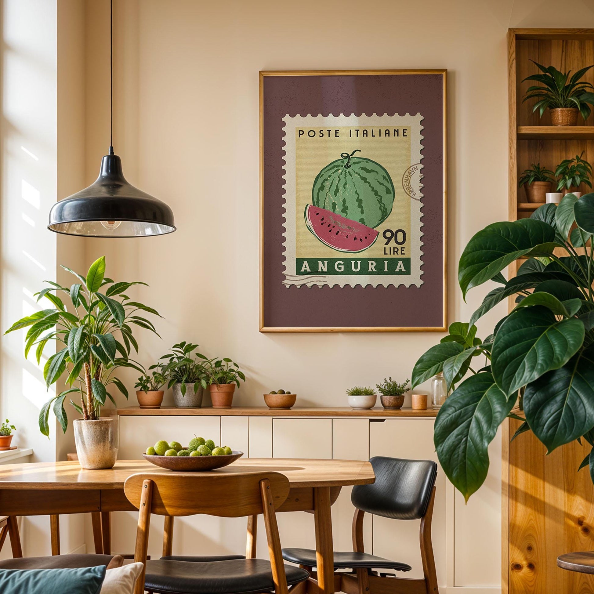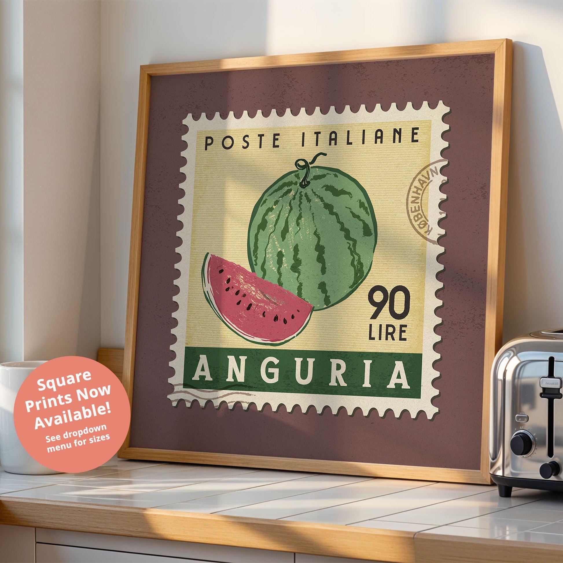 Watermelon Poster, Watermelon Fruit Market Print | Italian Food Art | Vintage Fruit Poster, Watermelon Wall Art, Retro Food Art Print