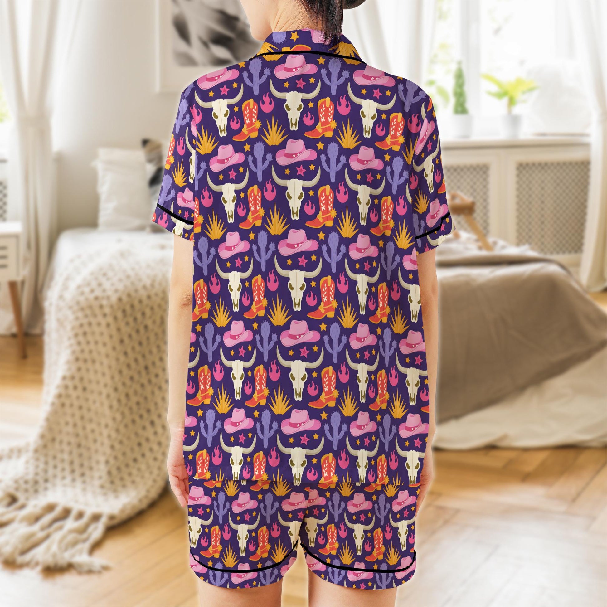 Western Cowgirl Satin Pajama Set, Western Bull Skull Cactus Pajamas, Cowgirl Vibes Sleepwear, Let's Go Girls Pajama Set, Cowgirl Country PJs