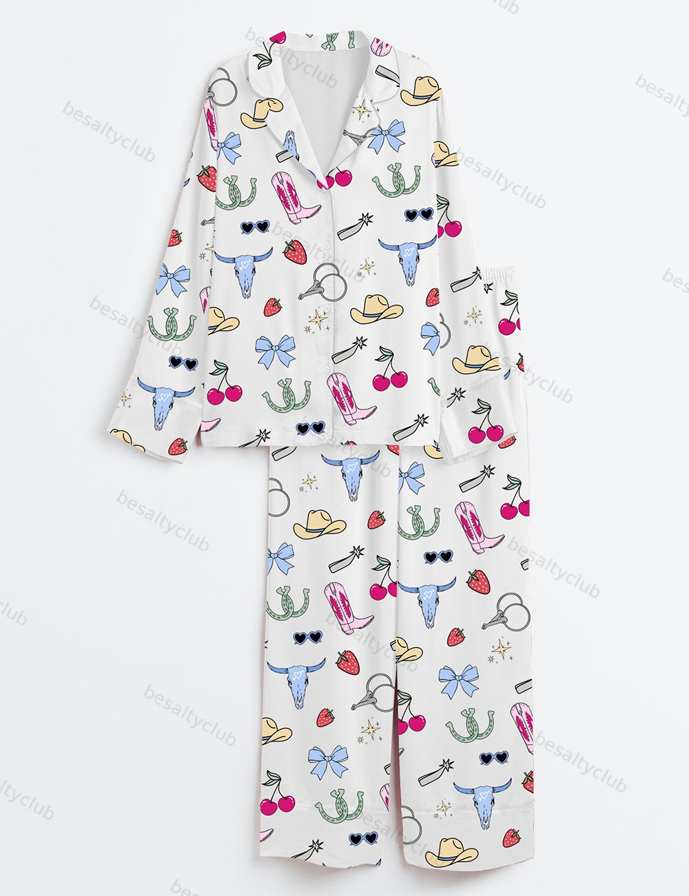Wild West Sassy Cowgirl Boots Coquette Cowgirl Western Country Music Long Sleeve Satin Pajama Set