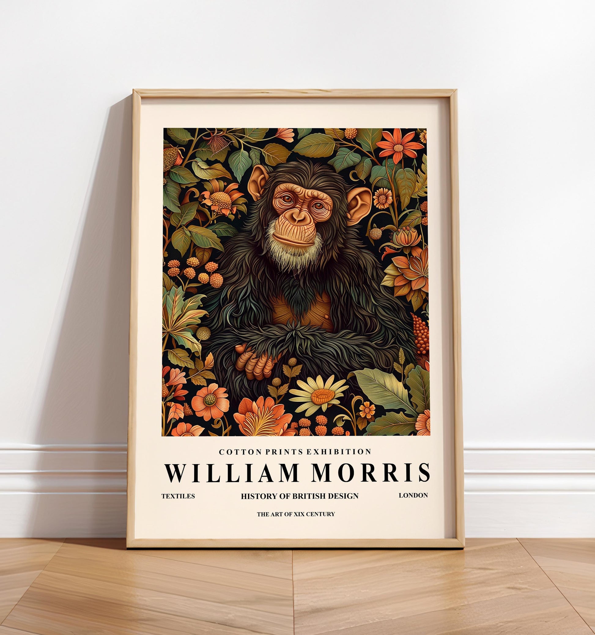 William Morris Monkey Art Print: Dark Botanical Floral Decor