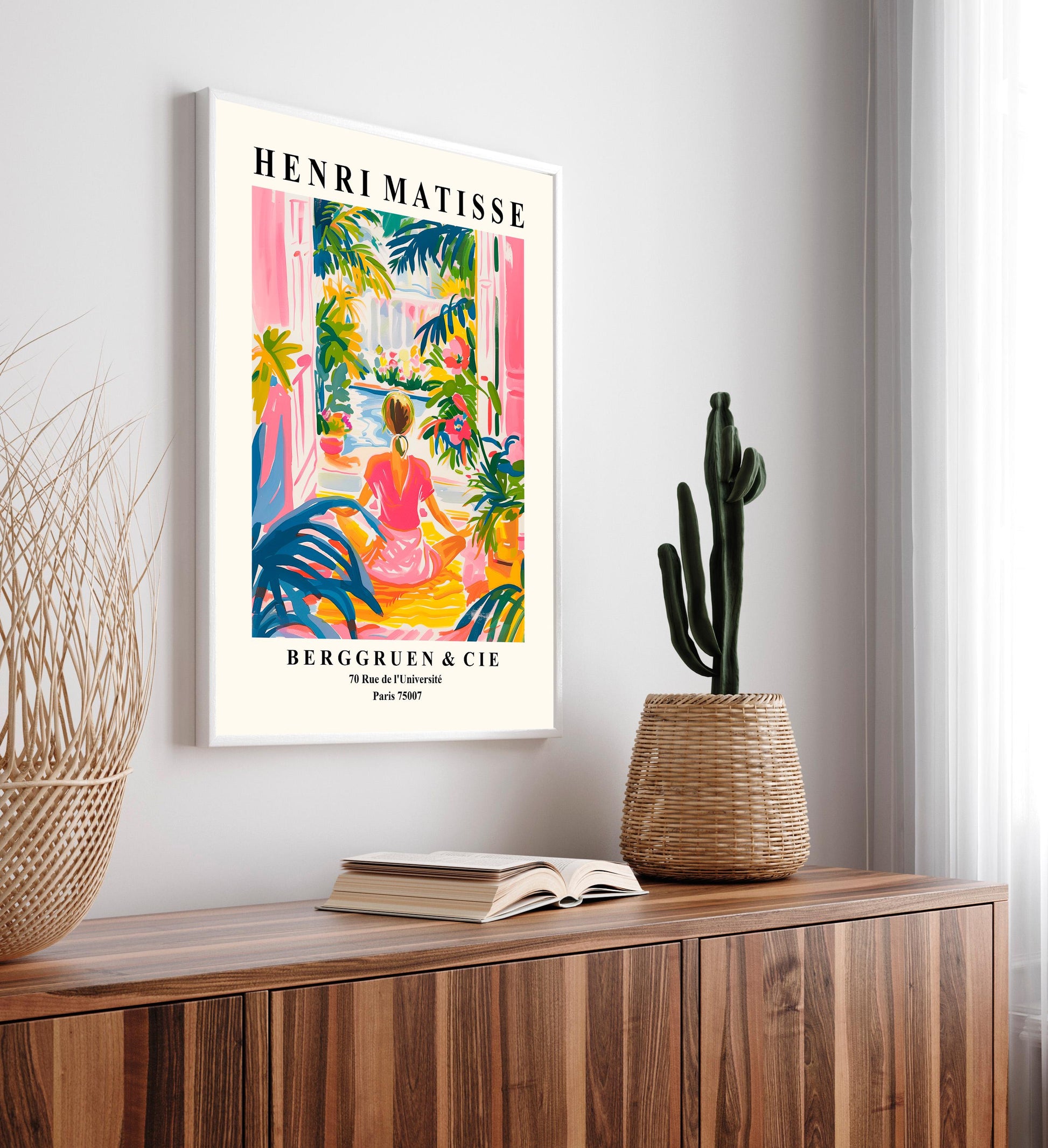 Woman doing yoga poster, Meditation wall art, Matisse print, Pink spiritual decor