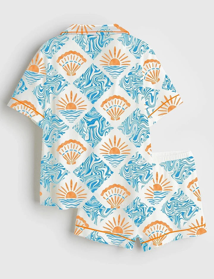 Women’s A Trip To The Beach Short Sleeve Satin Pajama Set