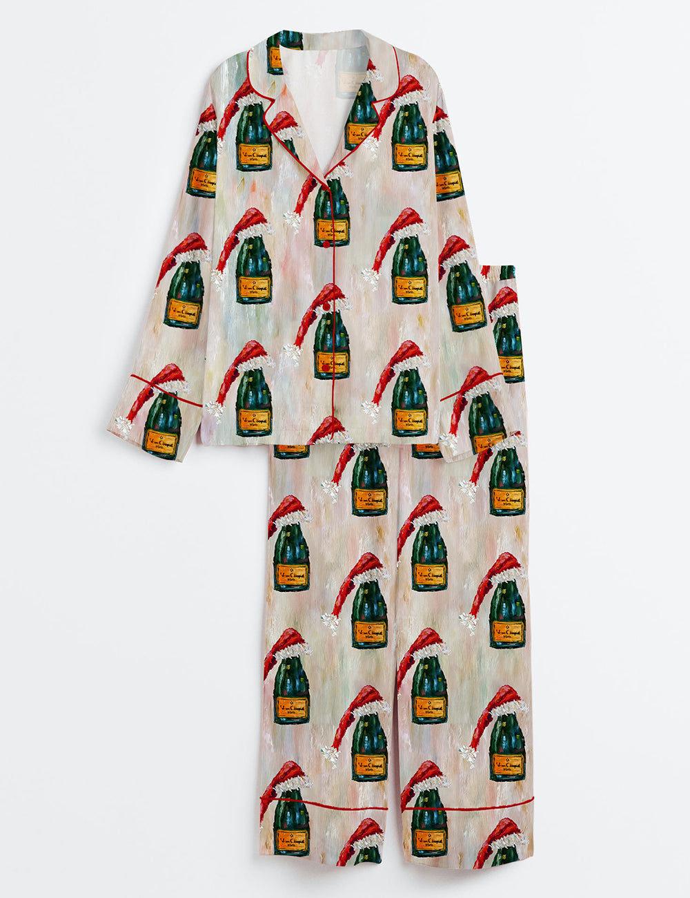Women’s All I Want For Christmas Is Veuve Christmas Champagne Long Sleeve Satin Pajama Set
