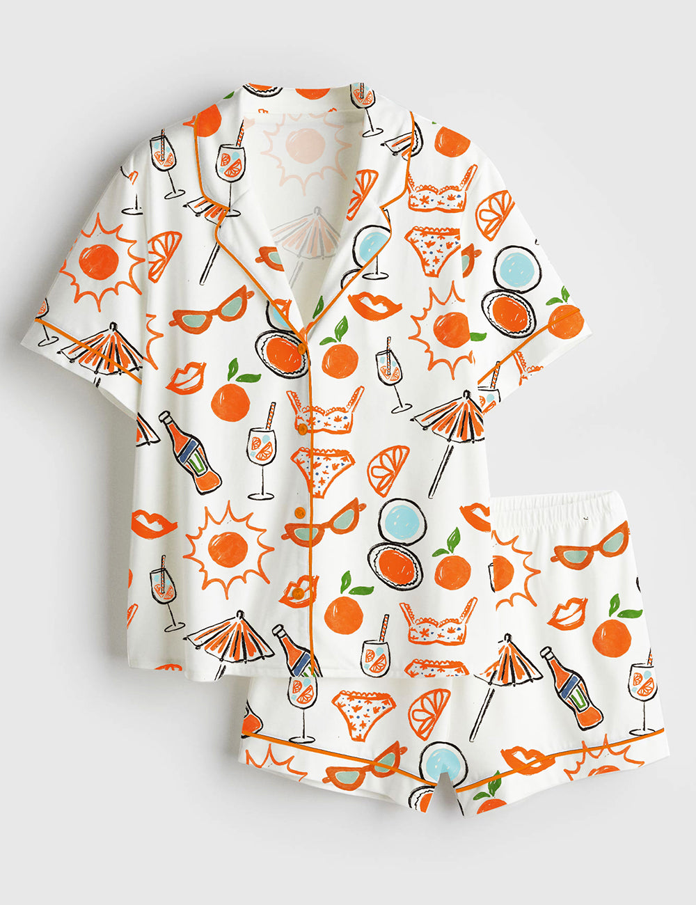 Women’s Aperol Bachelorette Party Beach Tropical Summer Bridal Party Short Sleeve Satin Pajama Set