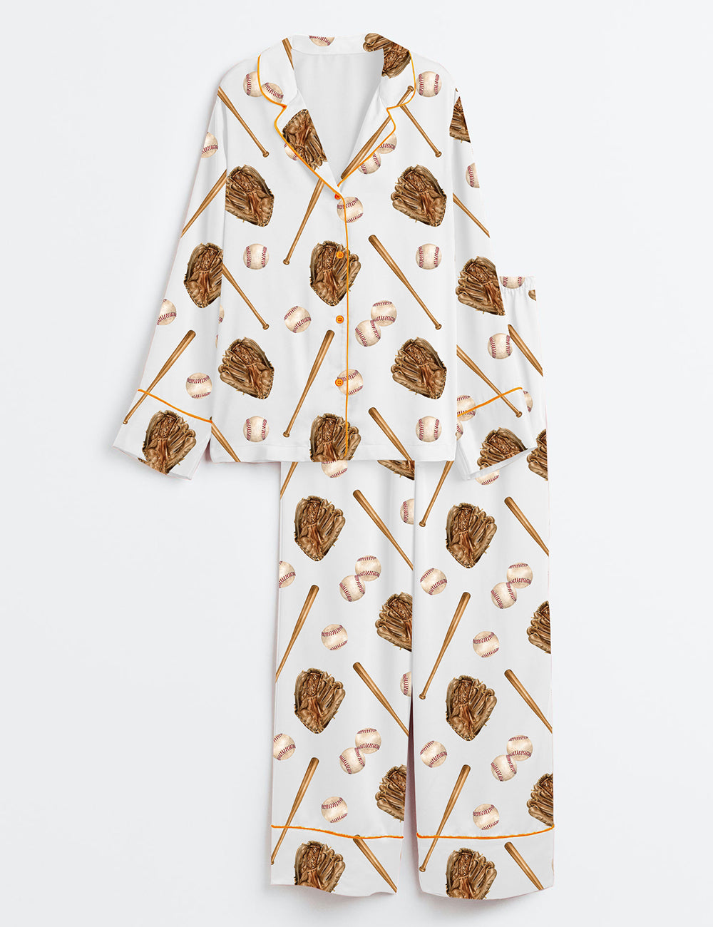 Women’s Baseball Glove And Ball Long Sleeve Satin Pajama Set