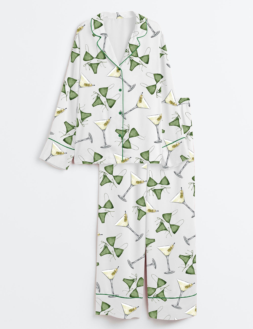 Women’s Bikinis And Martinis Cocktail Bachelorette Party Birthday Long Sleeve Satin Pajama Set