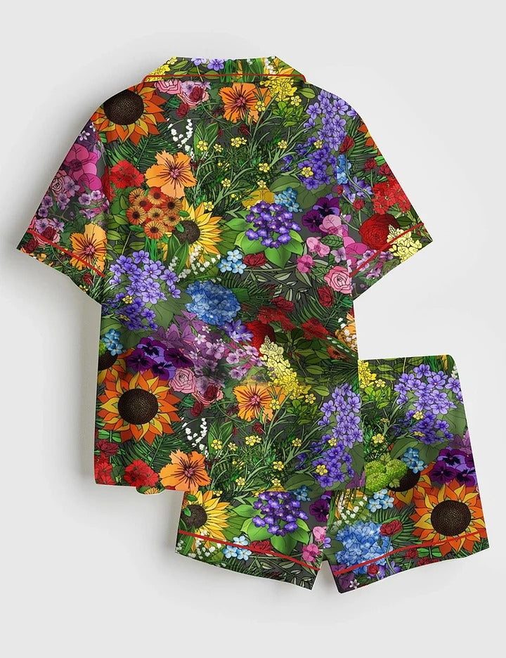 Women’s Botanic Garden Beautiful Garden Abundant Natural Scenery Short Sleeve Satin Pajama Set