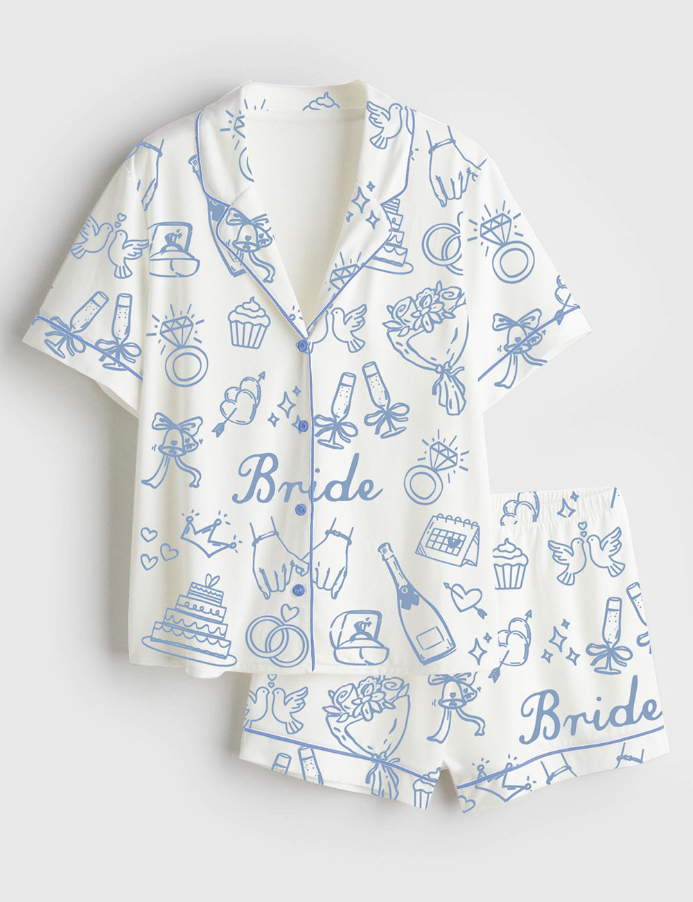 Women’s Bride Bridesmaid Bridal Party Wedding Day Short Sleeve Satin Pajama Set