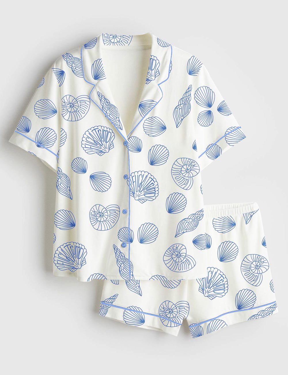 Women’s Coastal Shell Summer Beach Bachelorette Short Sleeve Satin Pajama Set