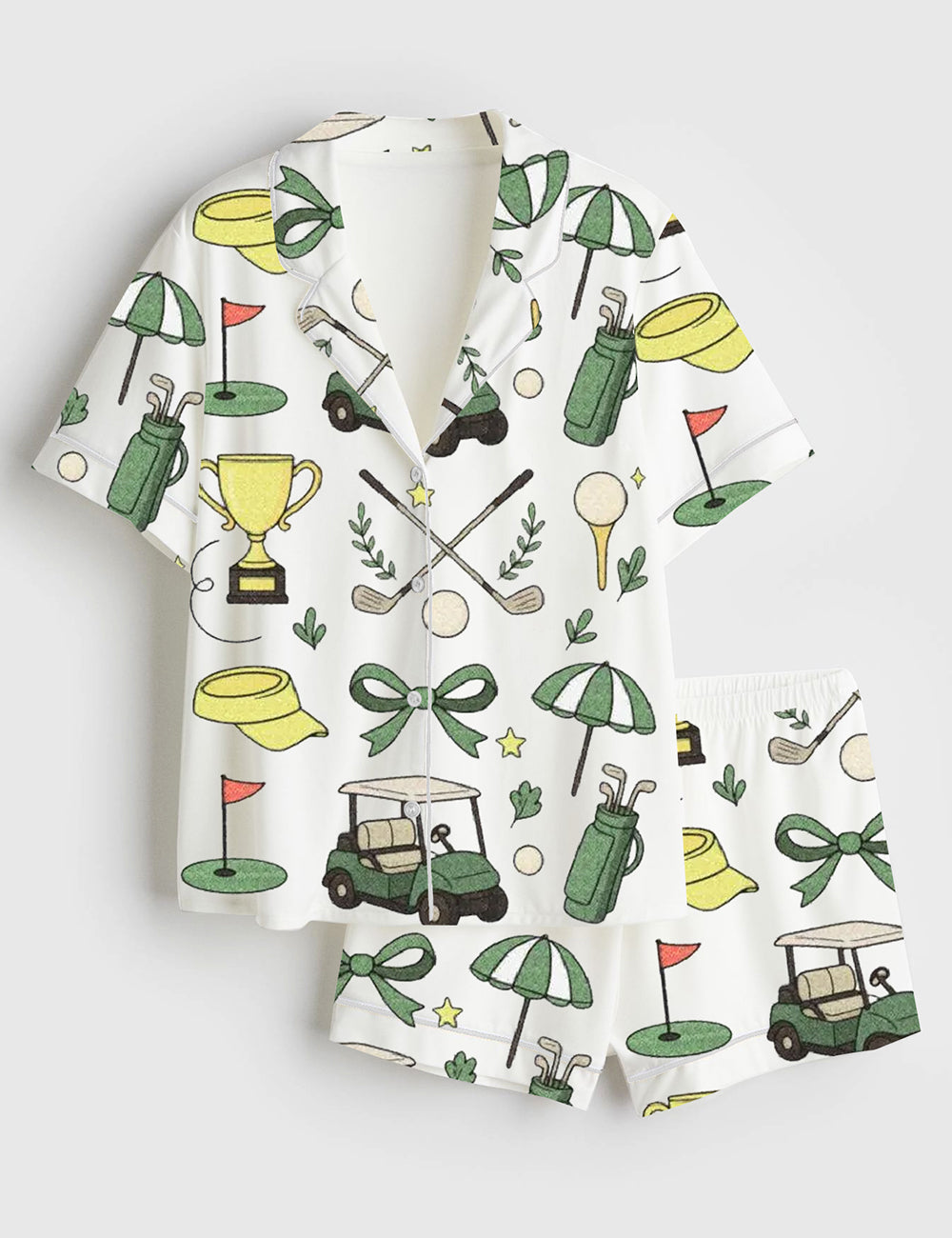 Women’s Coquette Golf Sport Short Sleeve Satin Pajama Set