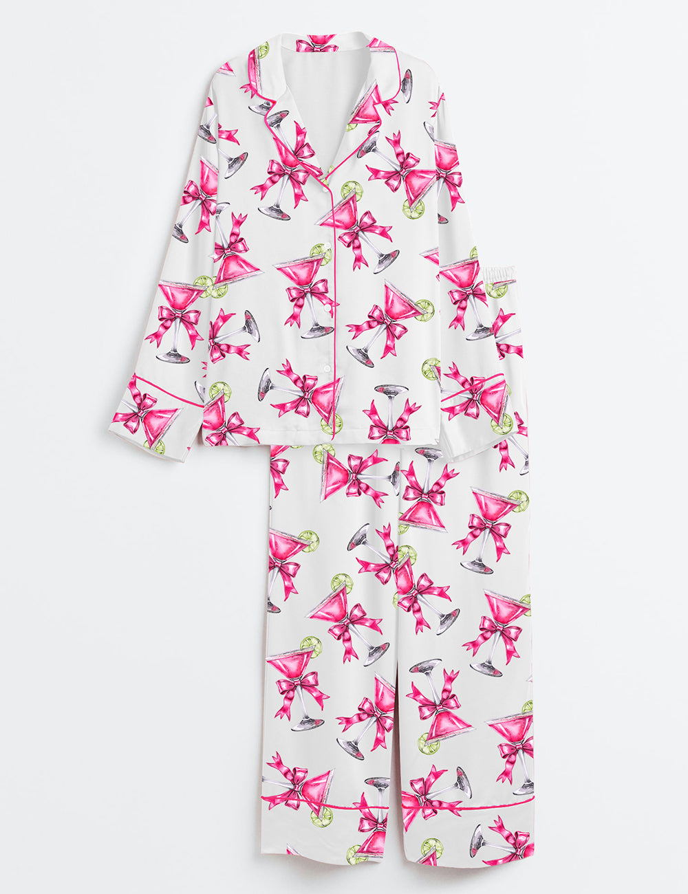Women’s Cosmopolitan Martini Glass With Lime And Bow Long Sleeve Satin Pajama Set