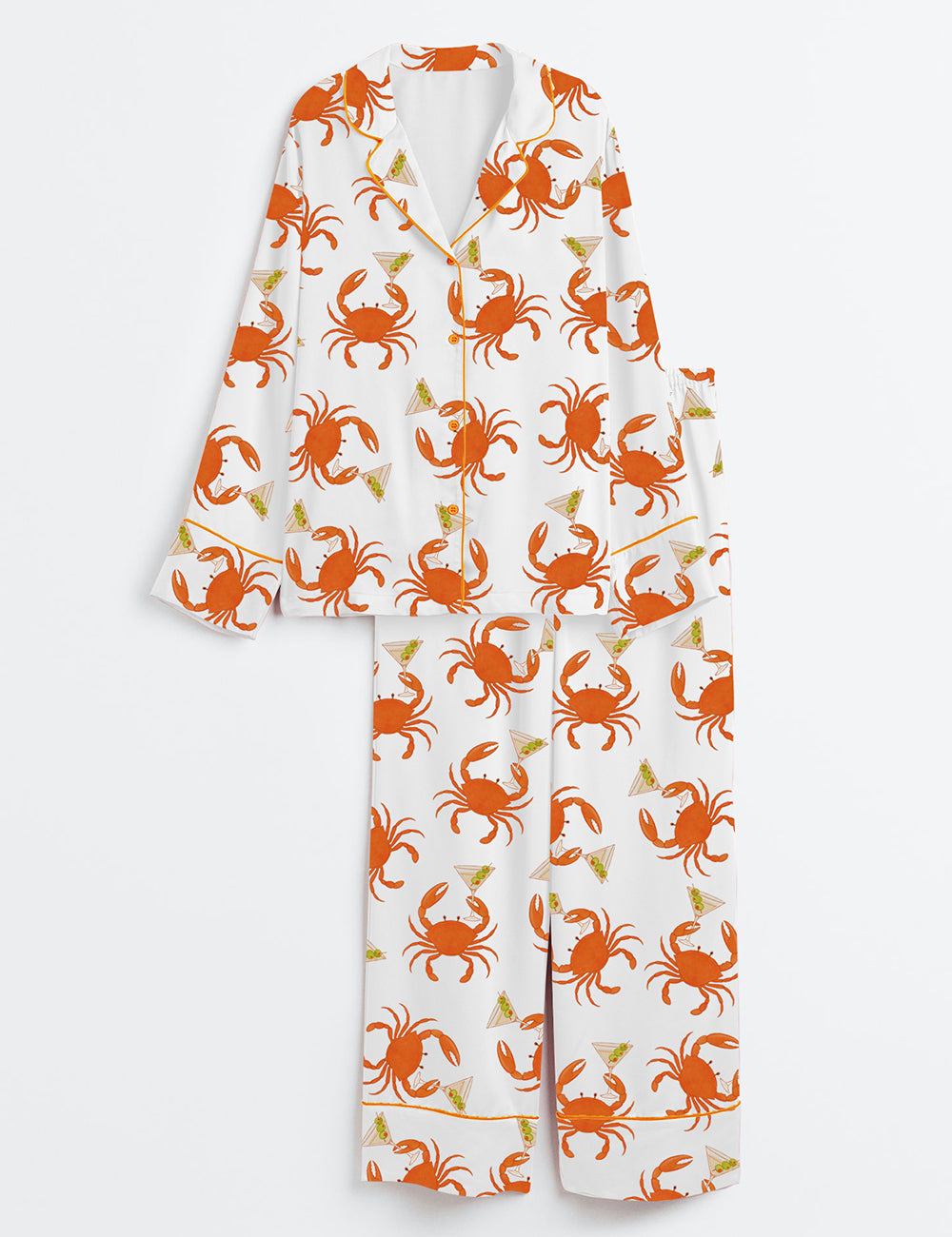 Women’s Crab Dirty Martini Fisherman Aesthetic Coastal Aesthetic Olive Martini Ocean Print Long Sleeve Satin Pajama Set