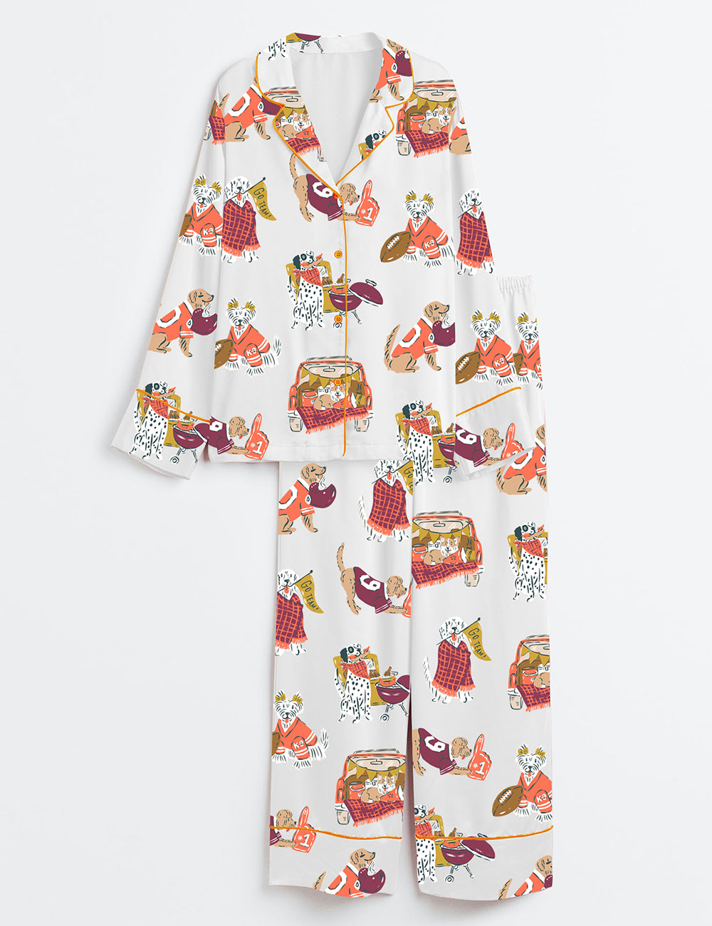 Women’s Dog Football Art Long Sleeve Satin Pajama Set