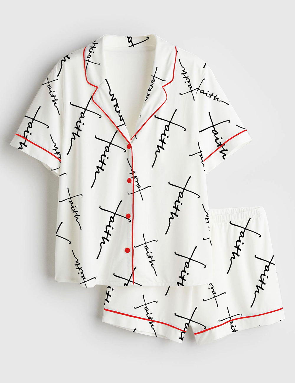 Women’s Faith Christian Jesus God Short Sleeve Satin Pajama Set