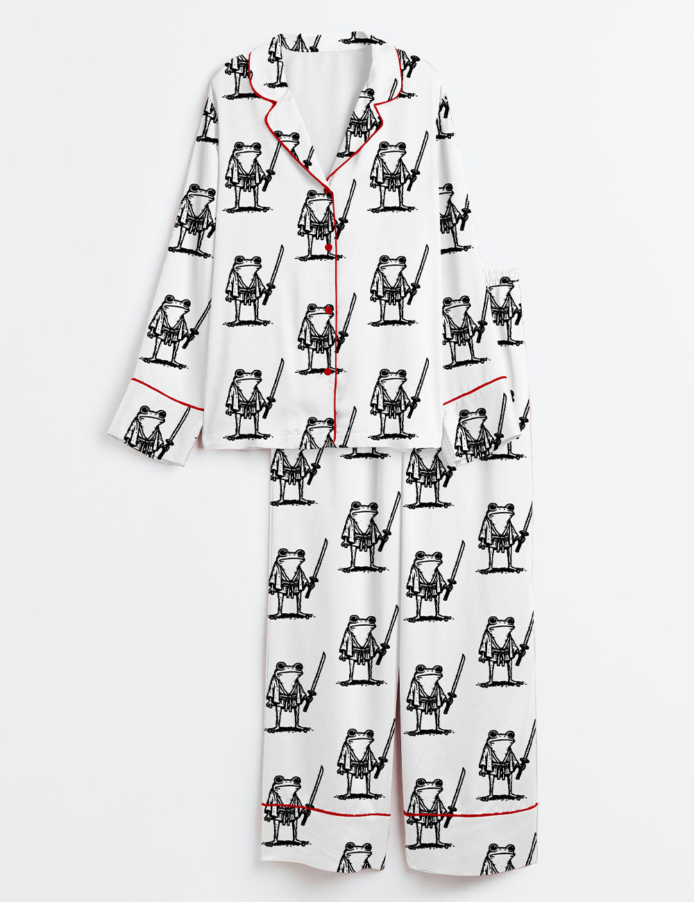 Women’s Focused Samurai Frog Long Sleeve Satin Pajama Set