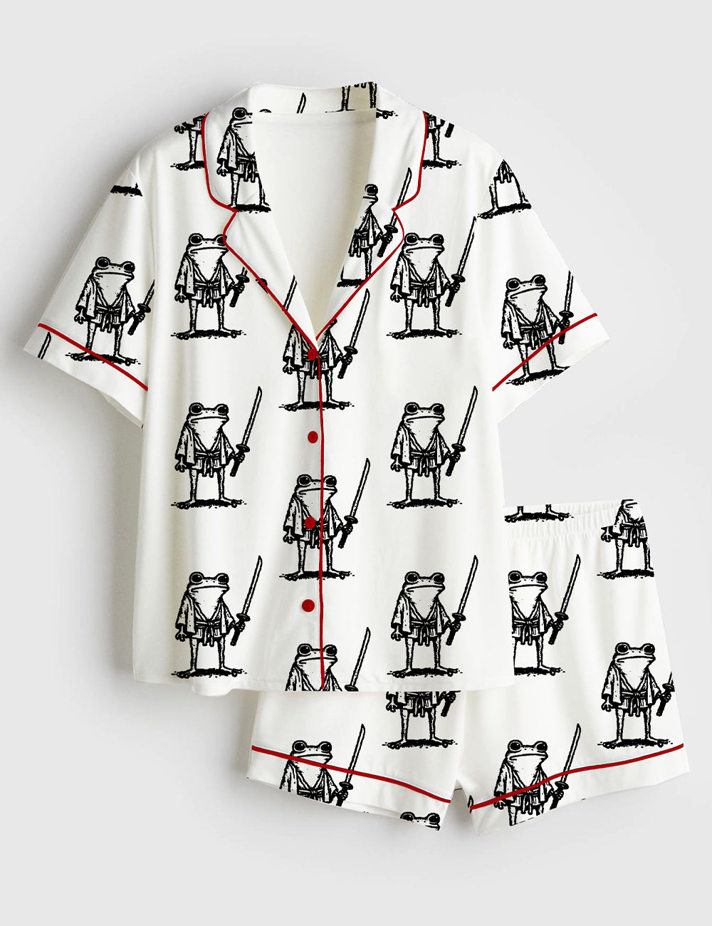 Women’s Focused Samurai Frog Short Sleeve Satin Pajama Set