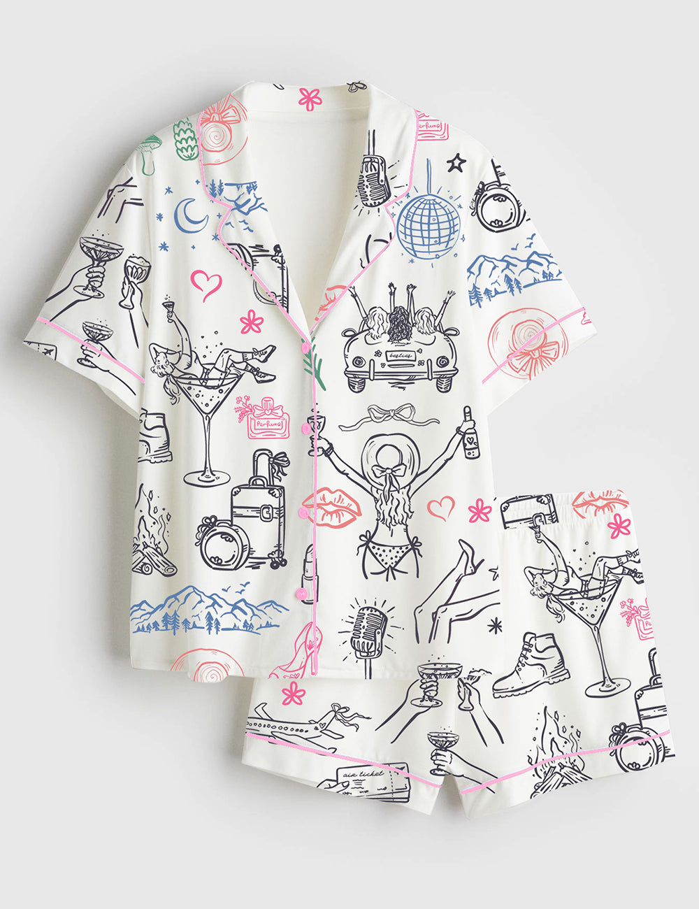 Women’s Girl's Trip Bachelorette Party Travel Short Sleeve Satin Pajama Set
