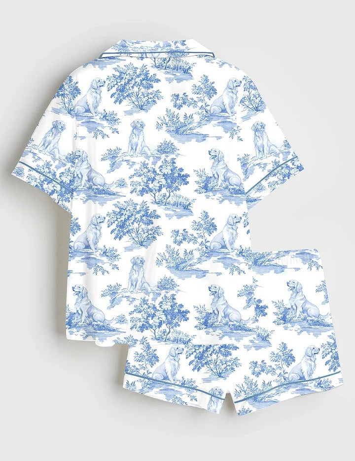 Women’s Golden Retriever Dog Lover Short Sleeve Satin Pajama Set