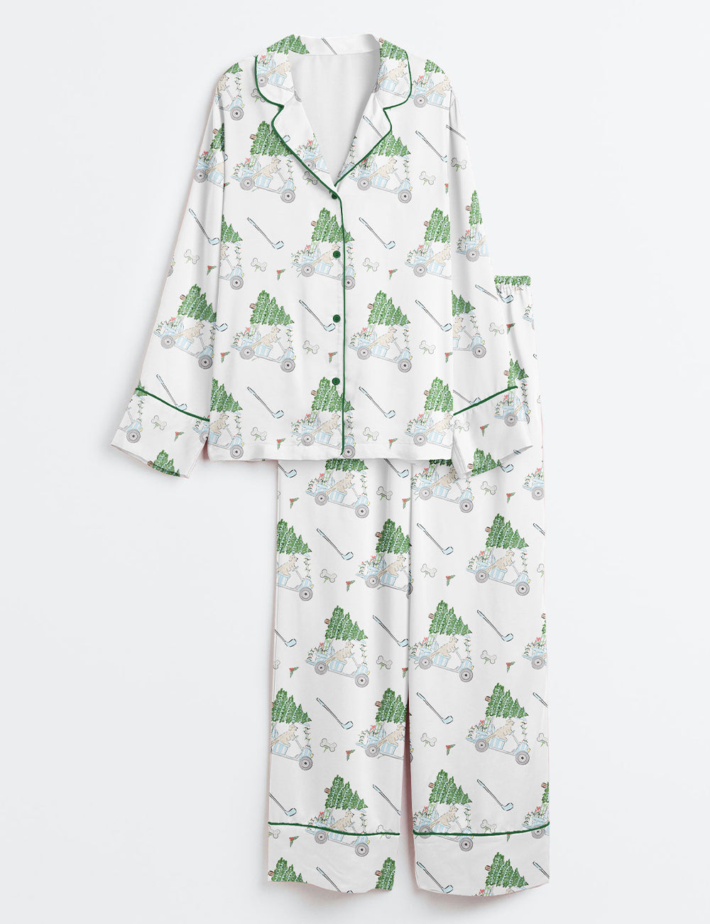 Women’s Golfing Puppy Christmas Long Sleeve Satin Pajama Set