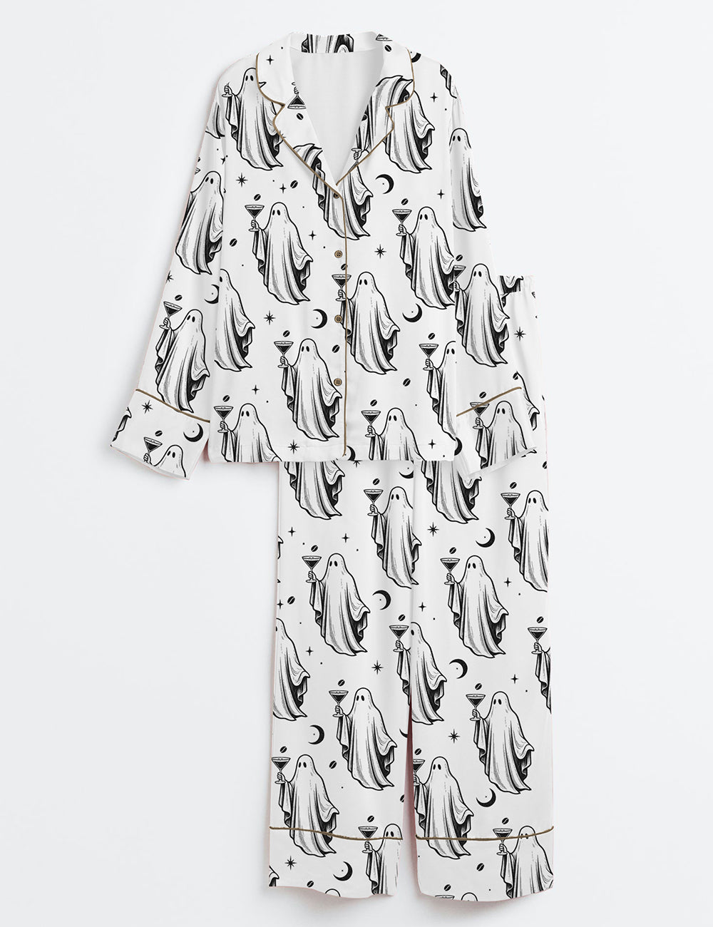Women’s Halloween Ghost Cocktail Espresso Martini Long Sleeve Satin Pajama Set