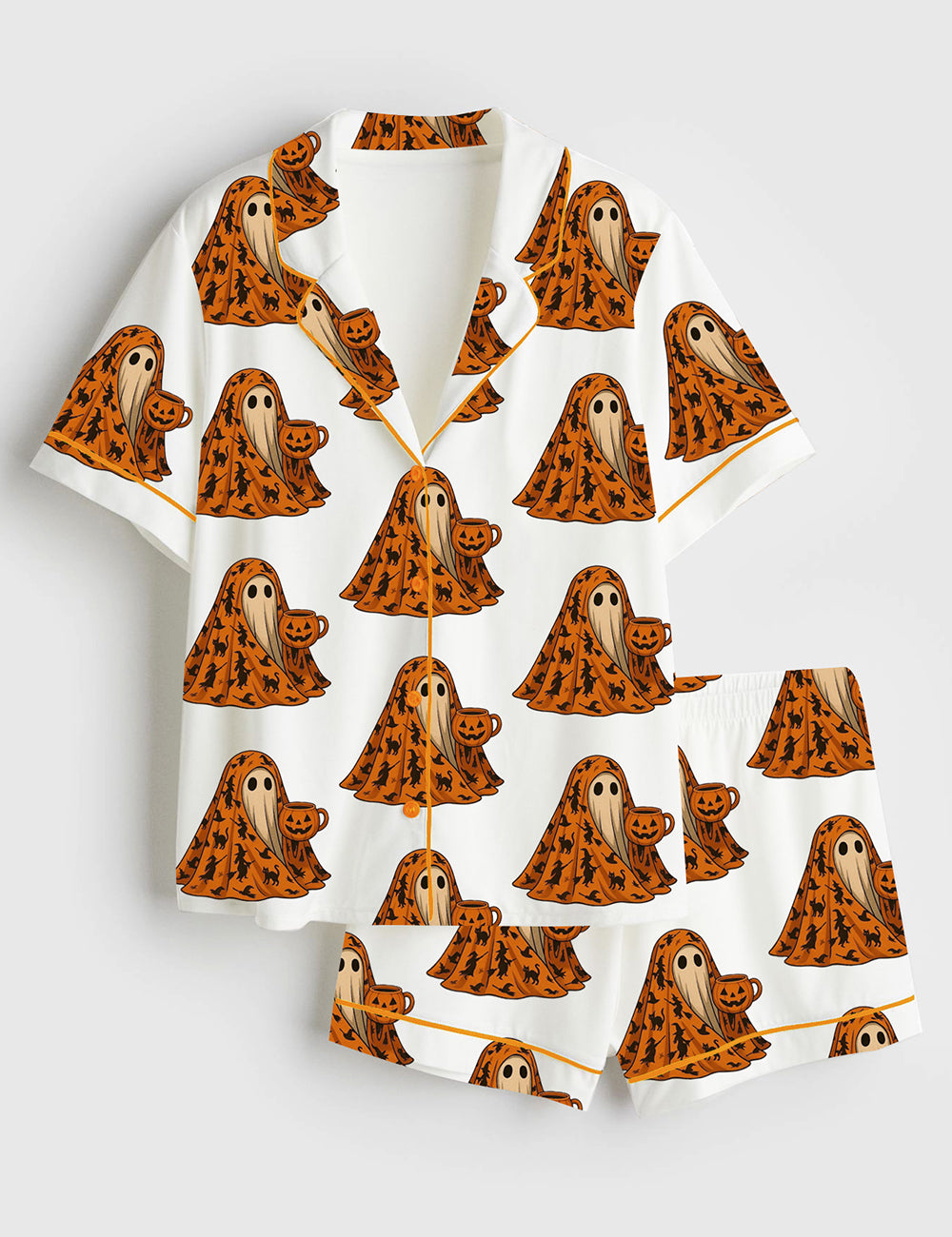 Women’s Halloween Ghost Cool Outside Short Sleeve Satin Pajama Set