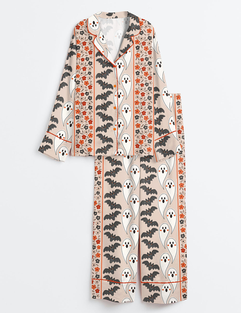 Women’s Halloween Ghost Floral Halloween Bat Long Sleeve Satin Pajama Set