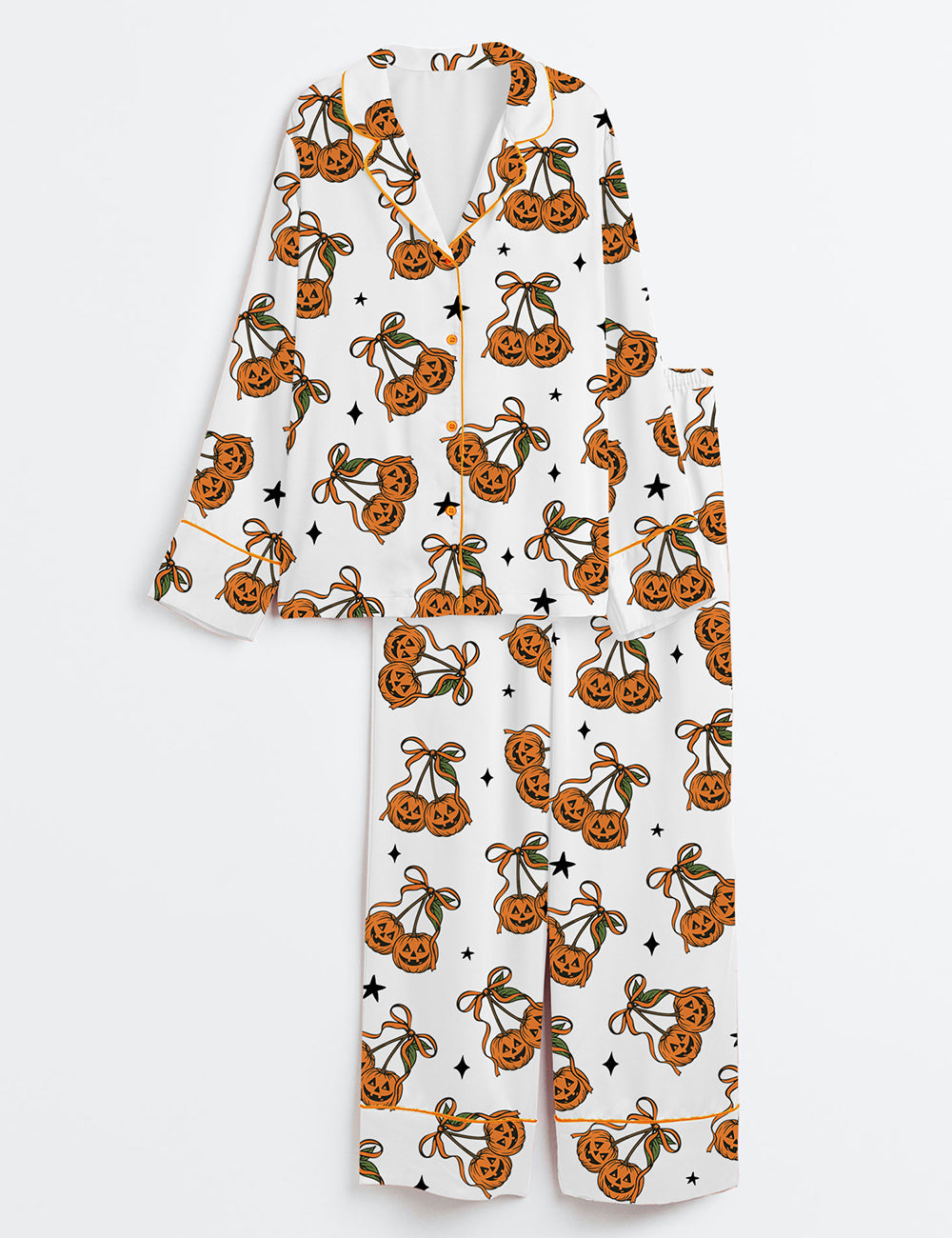 Women’s Halloween Pumpkin Cheeries Coquette Long Sleeve Satin Pajama Set
